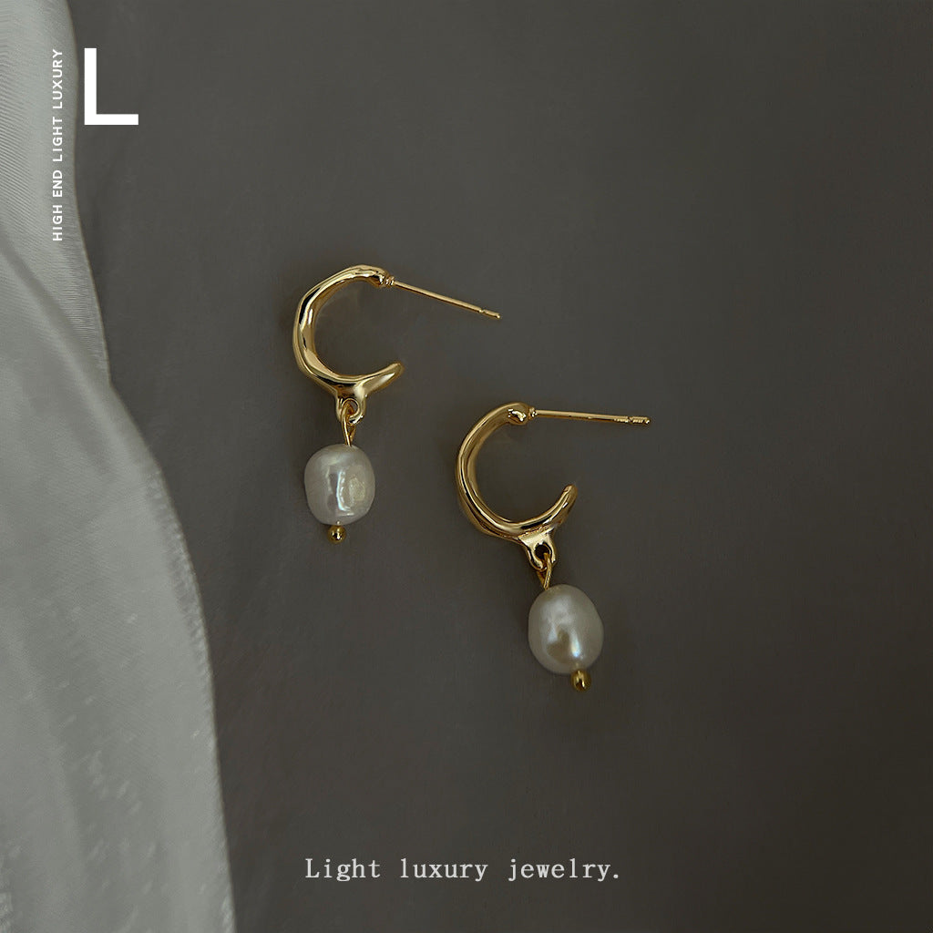 C廠【4459】淡水珍珠時尚通勤鍍14K高級感簡約通勤手作設計新款耳環耳環 24.08-2