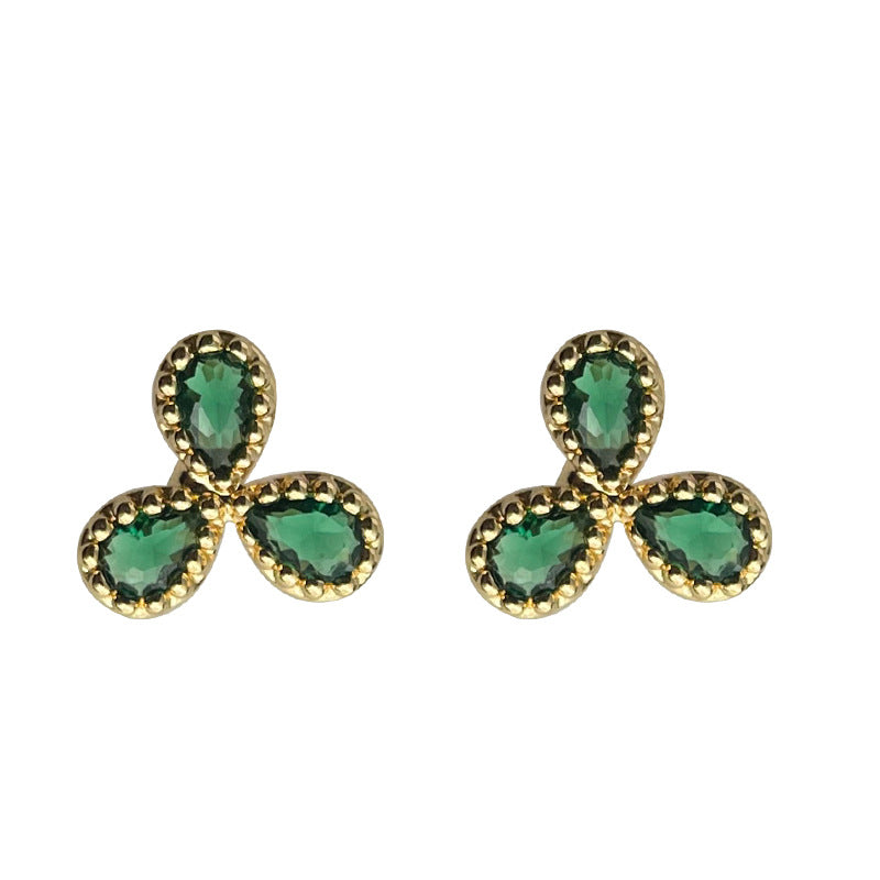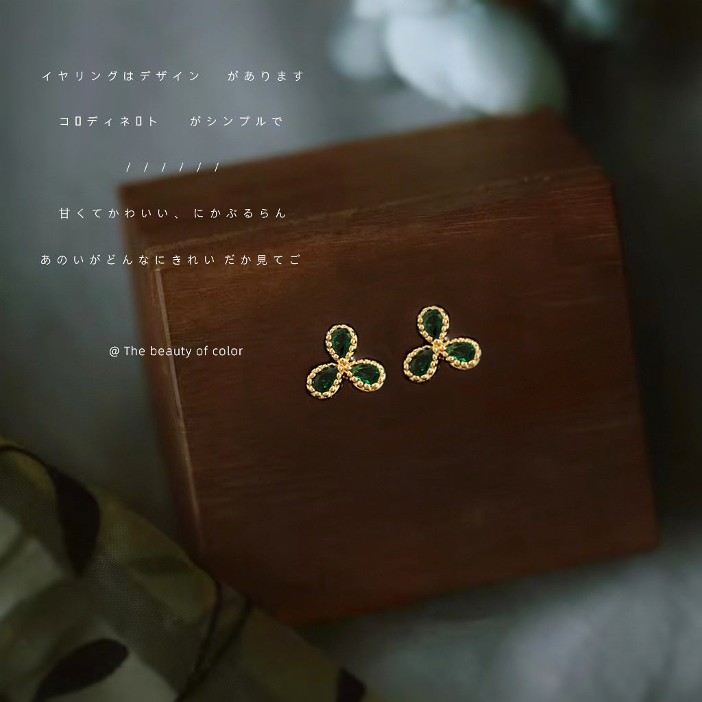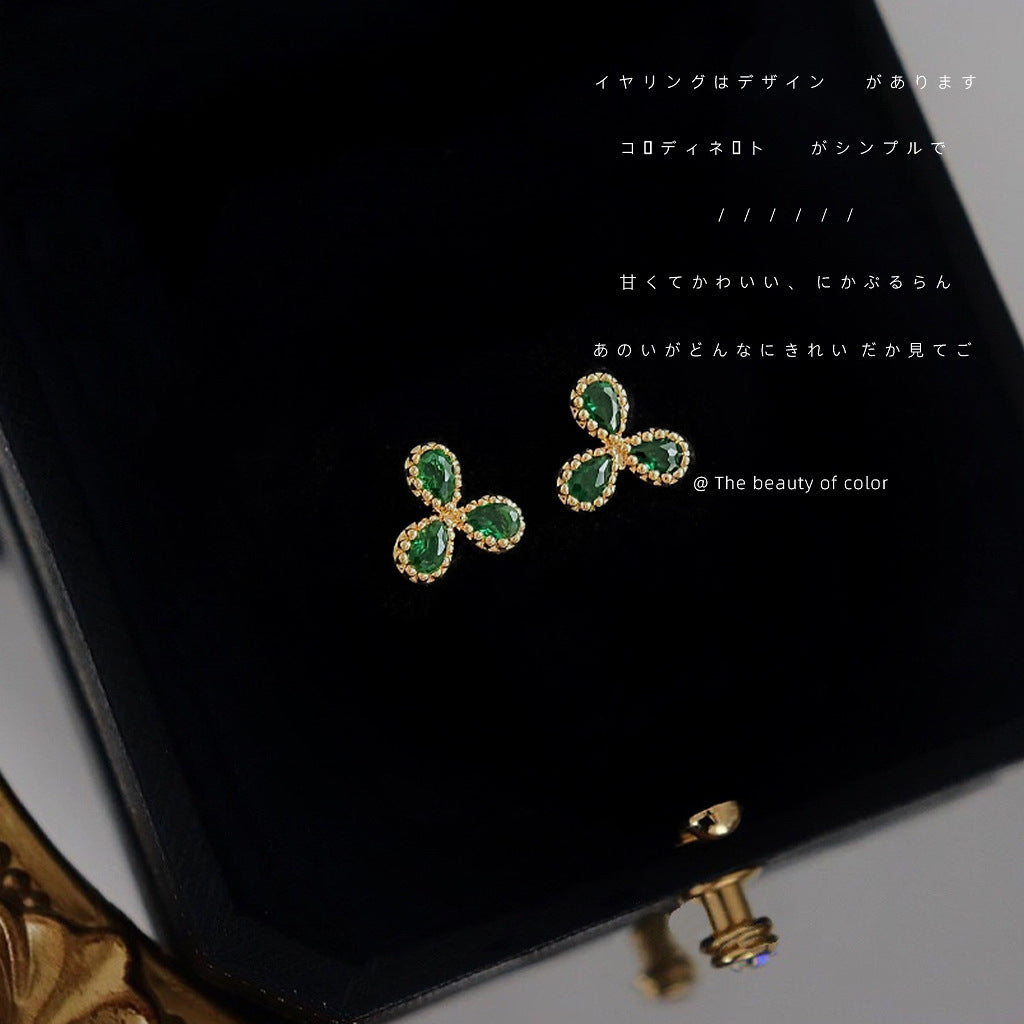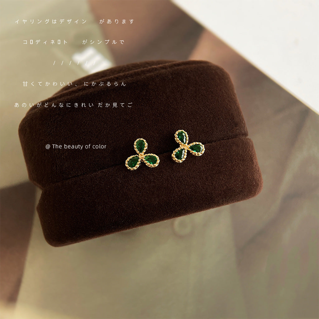 C廠【4463】幸運草微鑲鋯石祖母綠迷你版小巧簡約時尚通勤鍍14K耳環耳飾 24.08-1