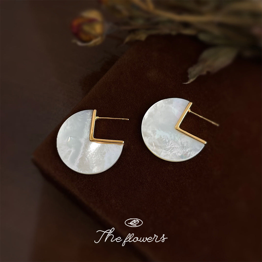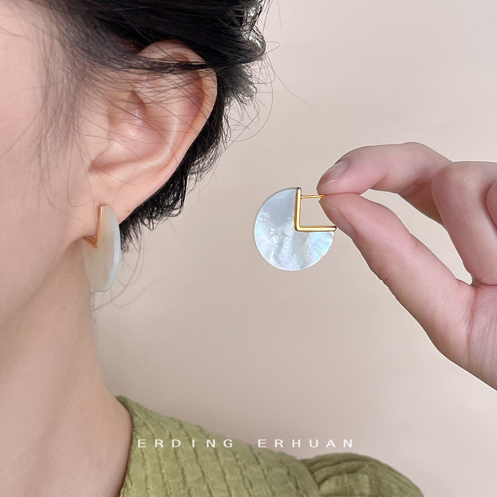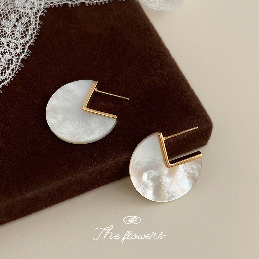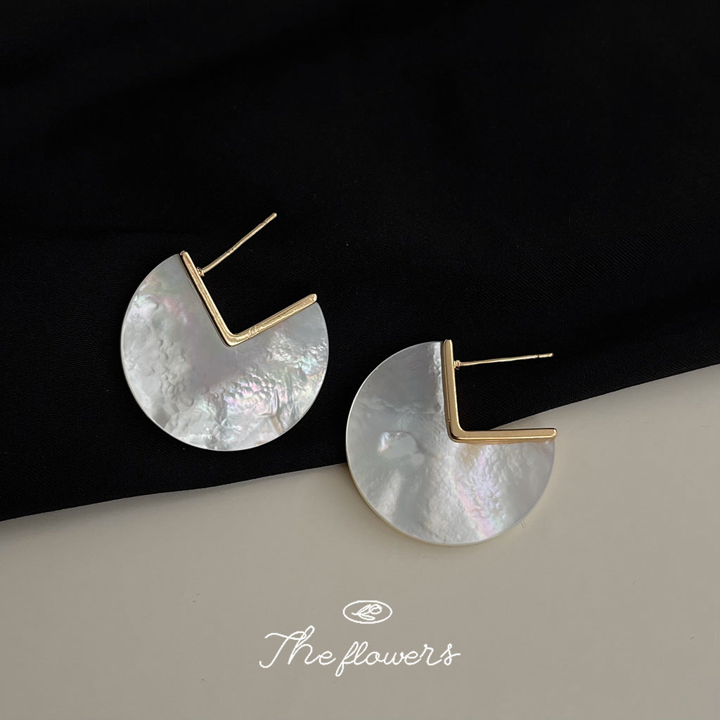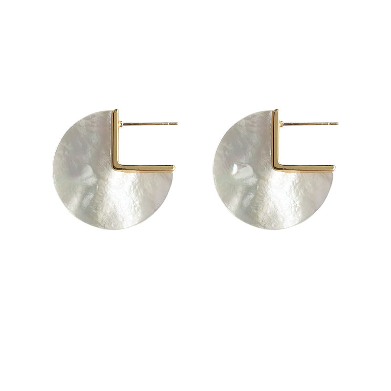 C廠【4485】真貝殼~輕奢風簡約時尚通勤圓形幾何2024全新耳環耳環飾品女 24.07-1