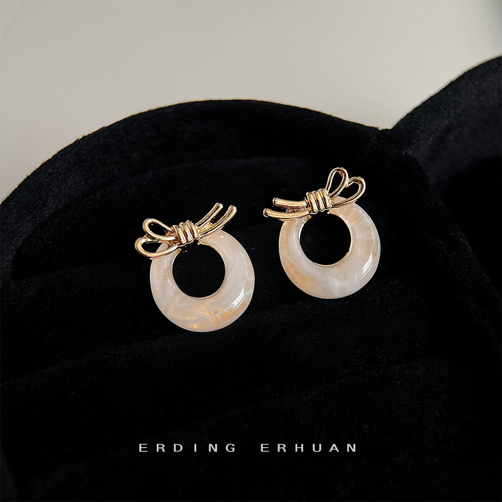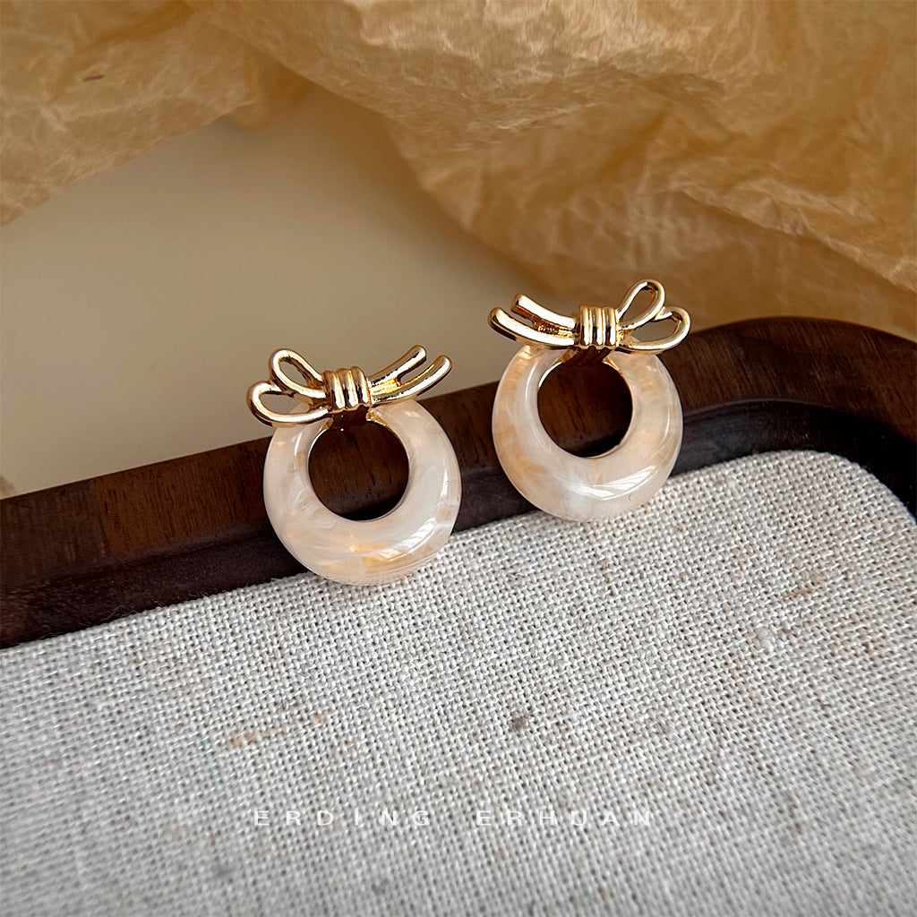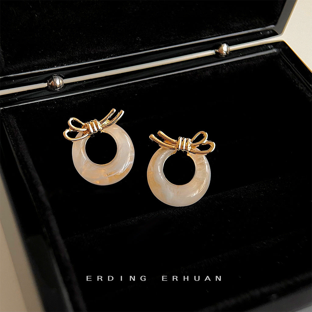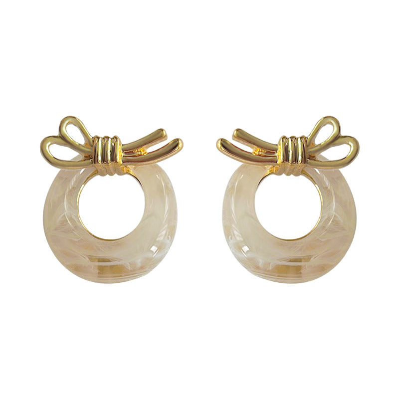 C廠【4499】法式溫柔鍍14K氣質優雅繫耳環四季溫暖暈染色蝴蝶結圓耳飾 24.09-2