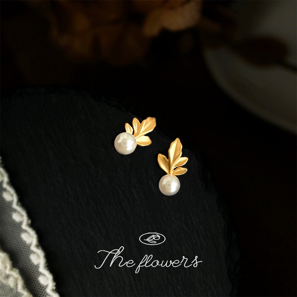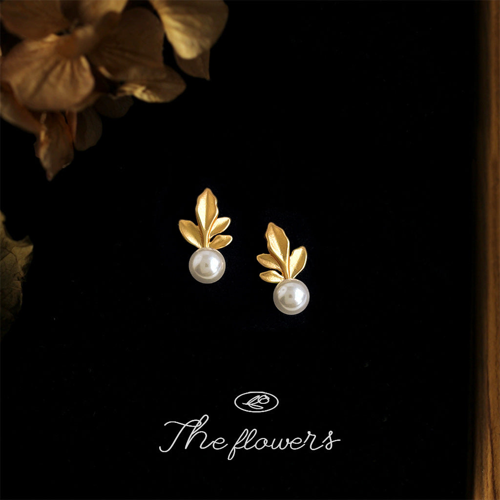 C廠【4504】簡約時尚通勤秋季款霧面小樹葉楓葉耳環女2024新款耳環飾品 24.08-2