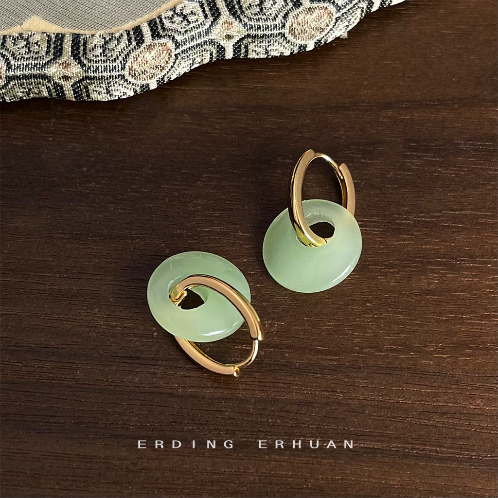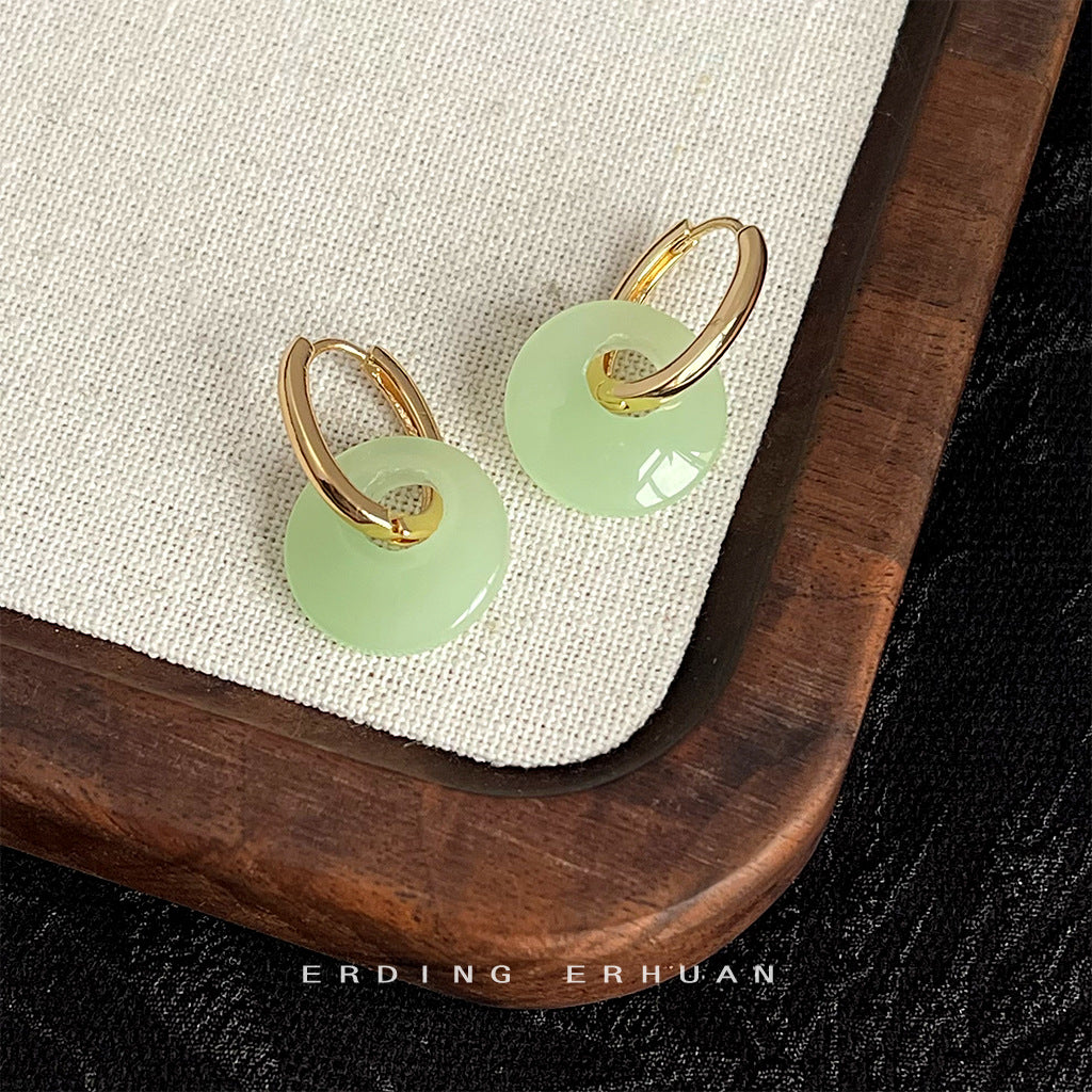 C廠【4514】全新中式個性扣款民族風平安扣圓形幾何耳環玻璃水晶耳環 24.07-3