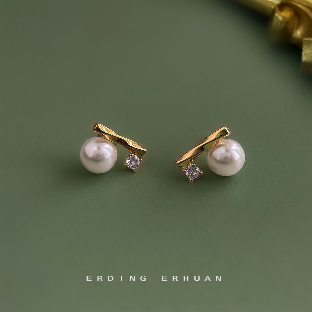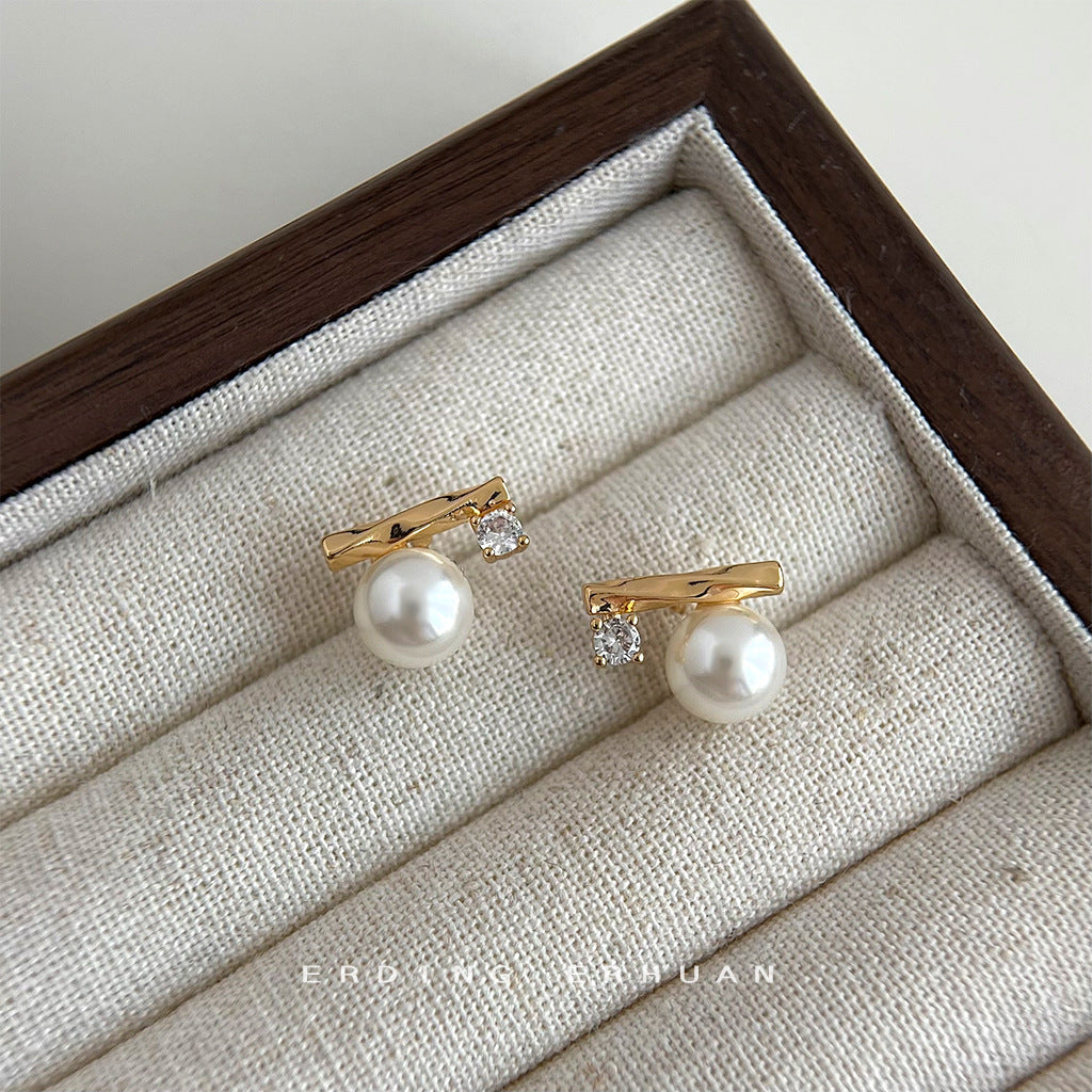 C廠【4541】時尚通勤高級感平衡木設計師款鍍14K微鑲鋯石耳環女簡約耳飾 24.08-2