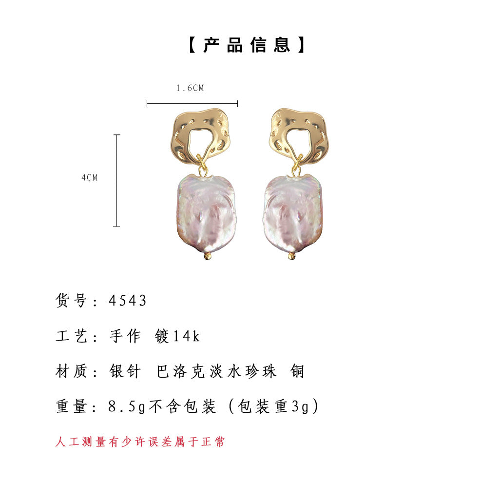 C廠【4543】巴洛克異形淡水珍珠不規則法式復古文藝耳環耳環飾品 24.08-2