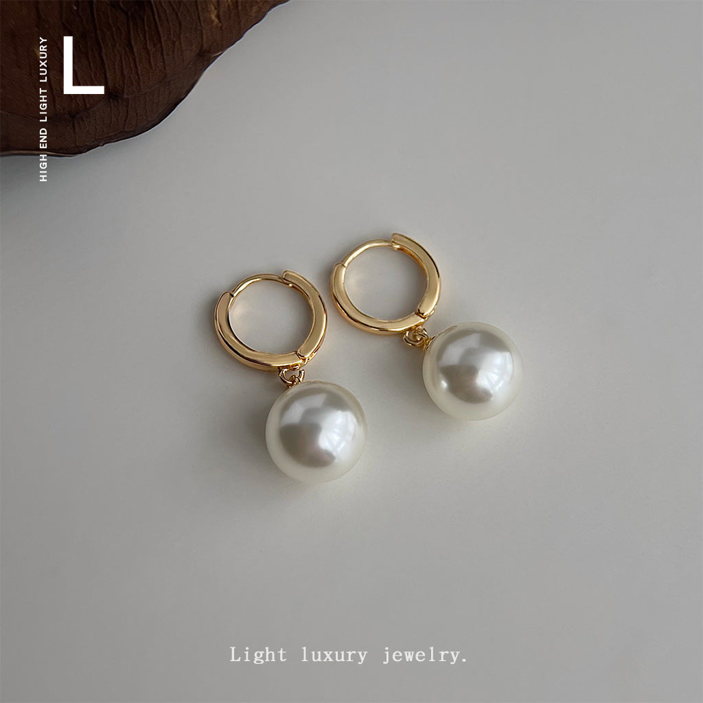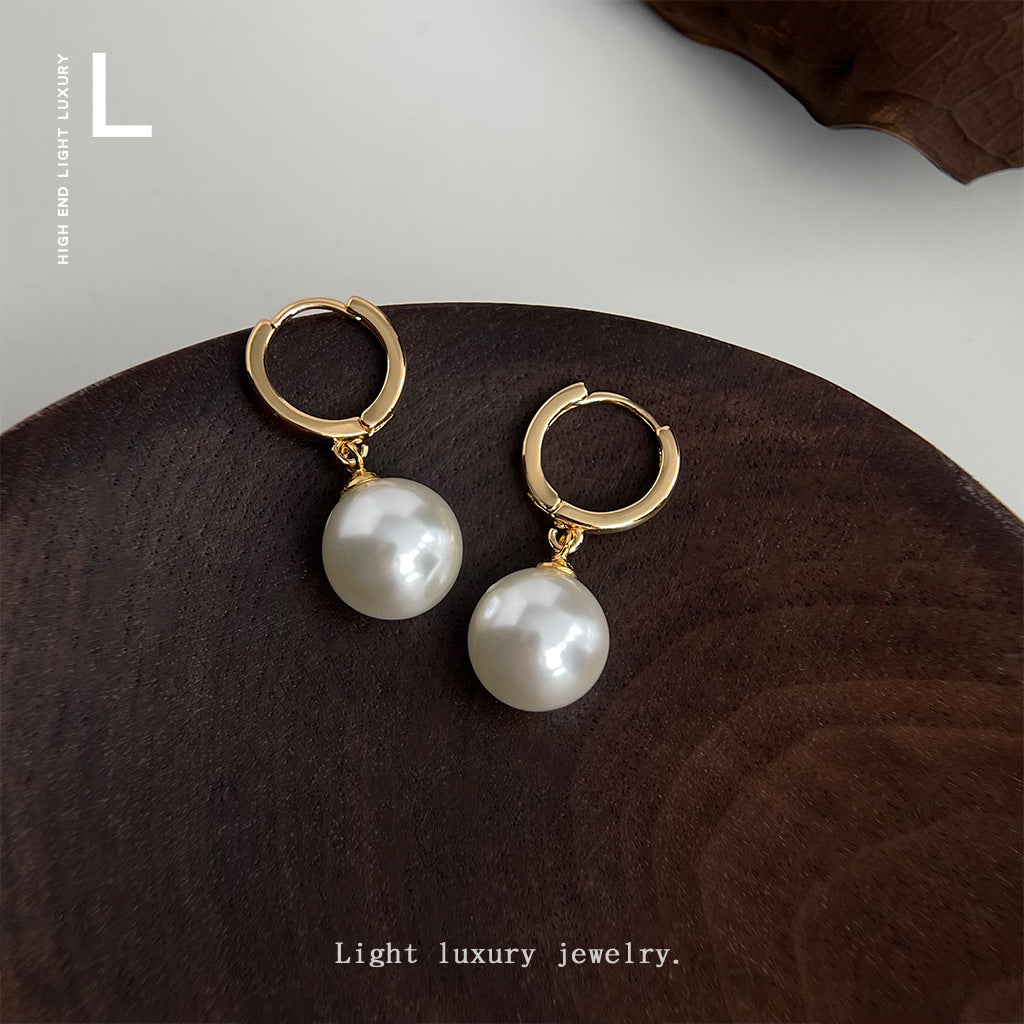 C廠【4546】施家玻璃珍珠圓形幾何高級感時尚通勤百搭耳環飾品耳環女 24.08-1