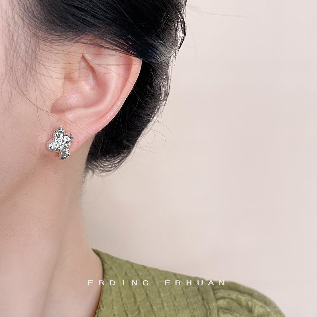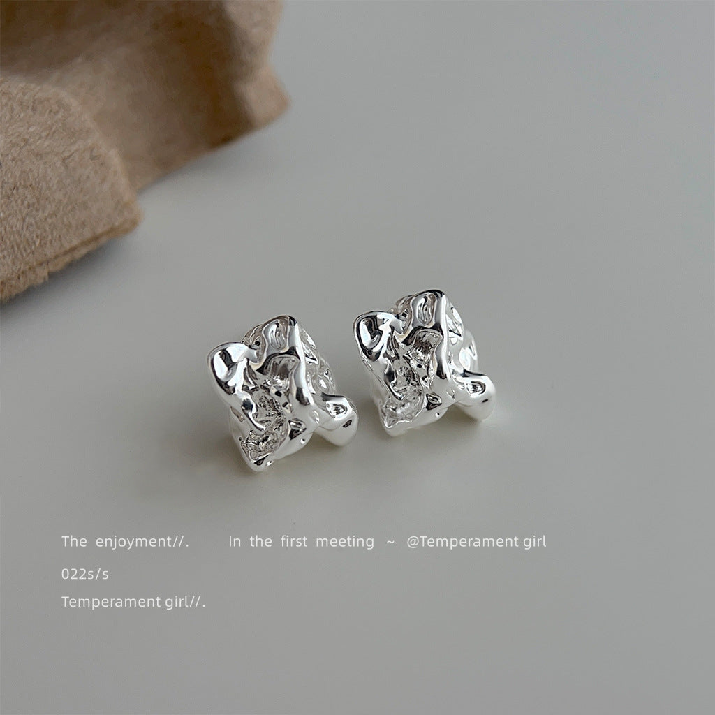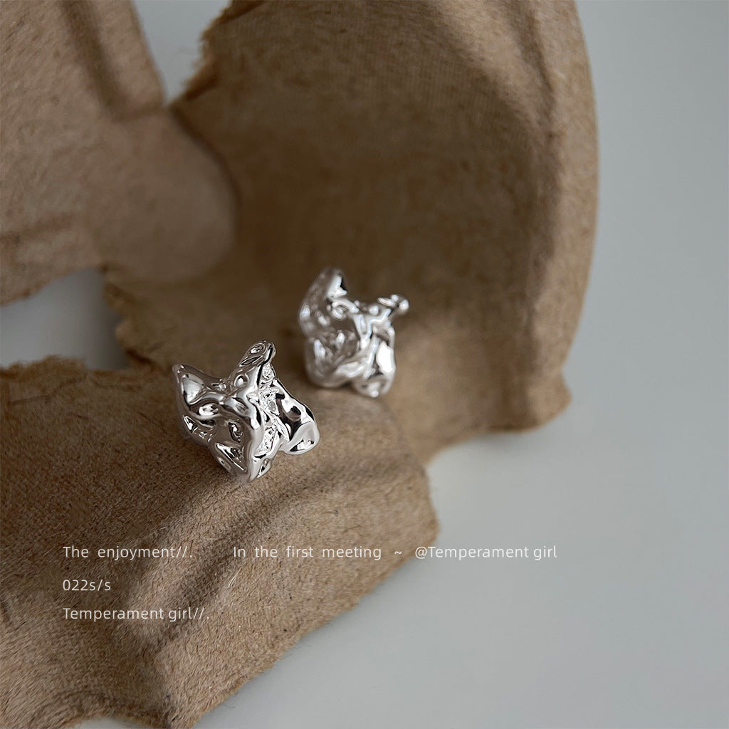 C廠【4552】個性甜酷風液態不規則幾何立體銀色耳環女小眾設計師ins耳環 24.07-4