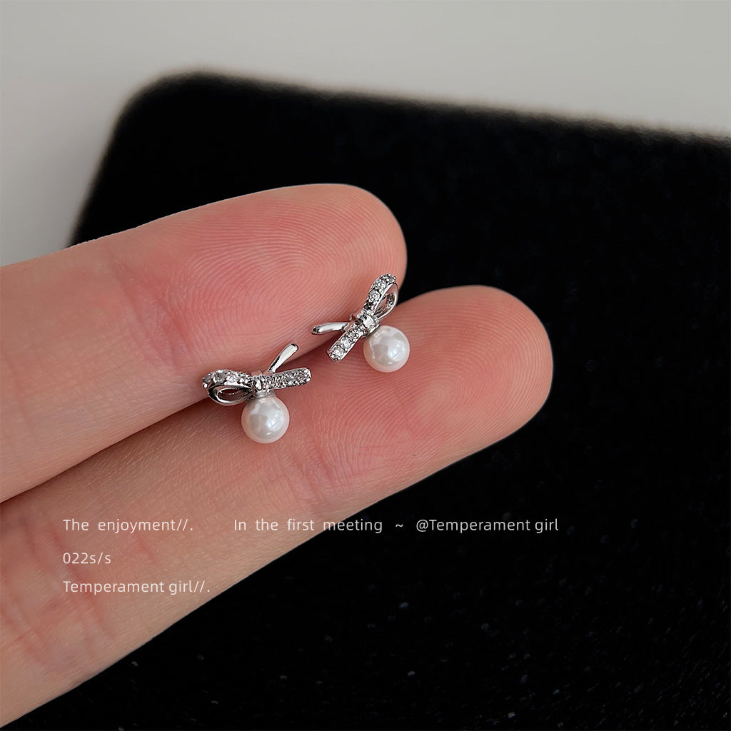 C廠【4554】微鑲鋯石迷你版小巧簡約日常通勤蝴蝶結耳環氣質新款耳環飾品 24.08-2
