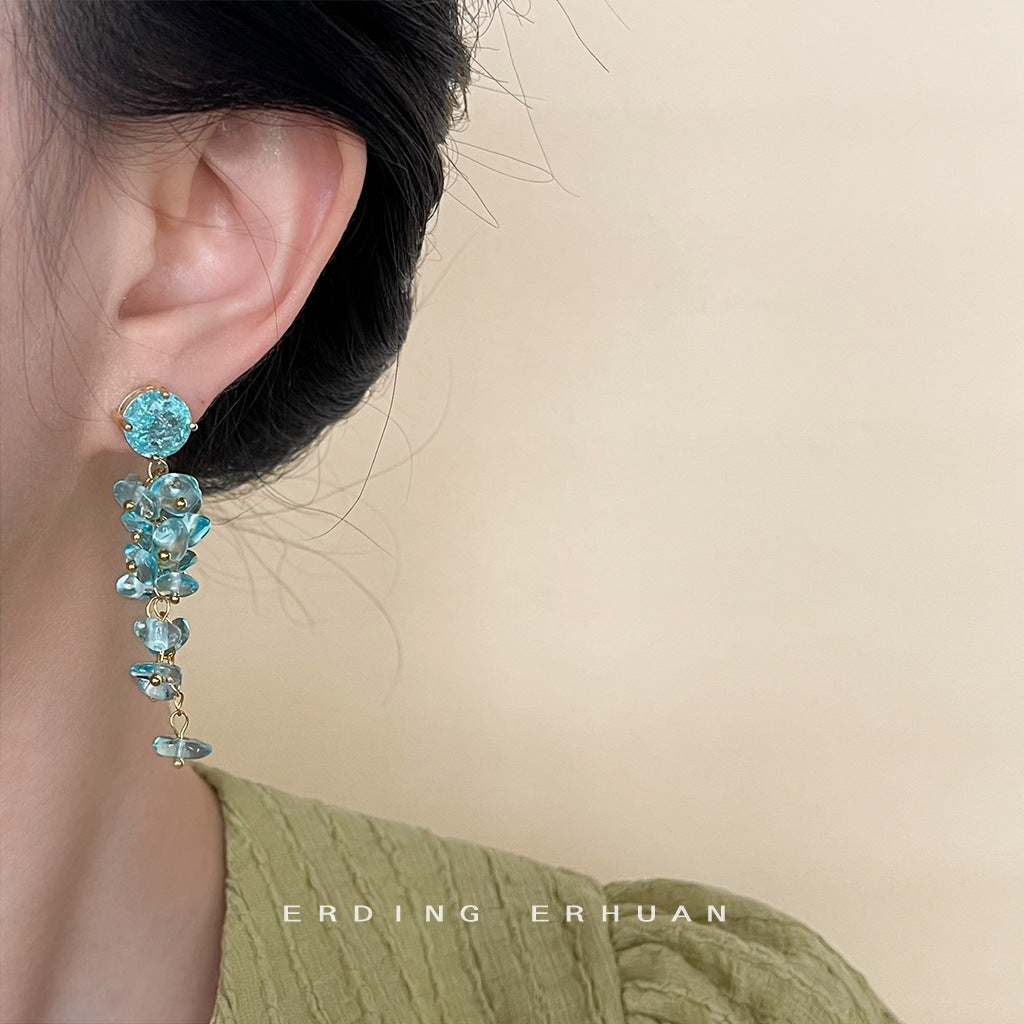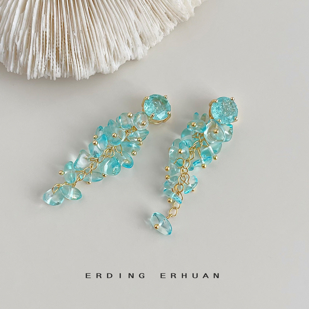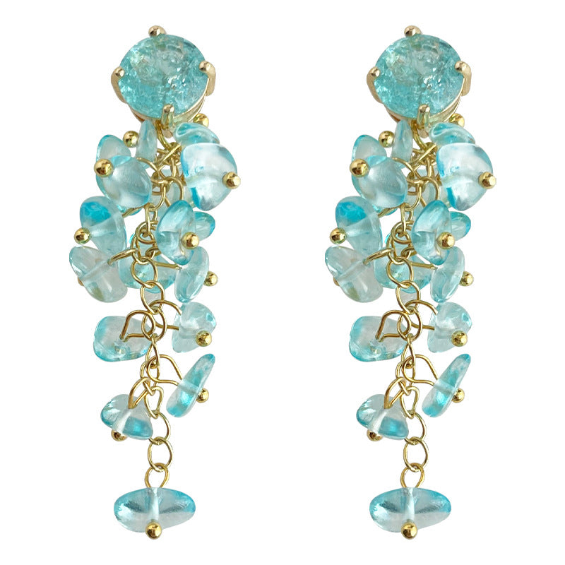 C廠【4625】海洋系列原創設計手工長款流蘇玻璃水晶耳環氣質優雅甜美耳飾 24.07-3