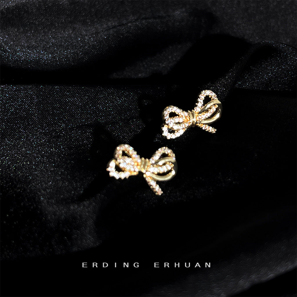 C廠【4650】實物很美~這款很好賣微鑲鋯石鍍14K蝴蝶結耳環女氣質清新甜美耳飾 24.08-1