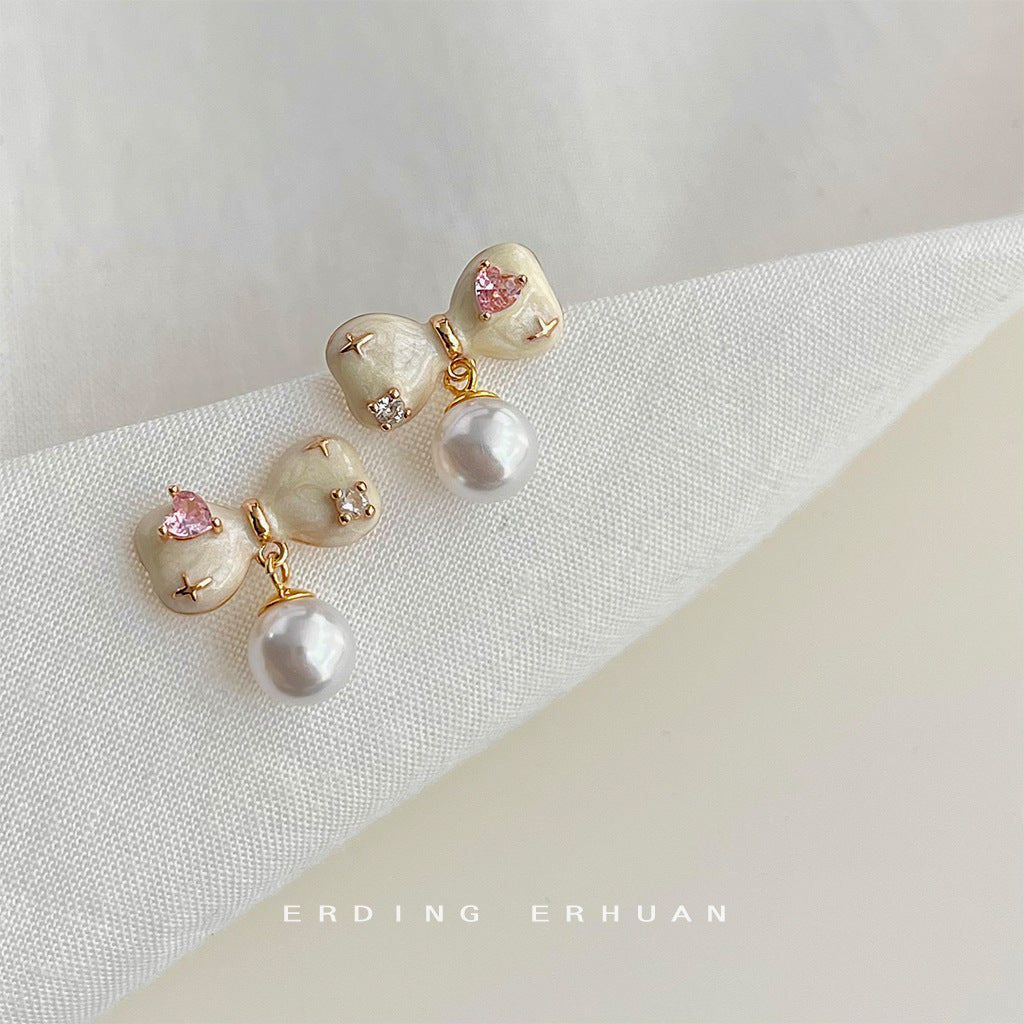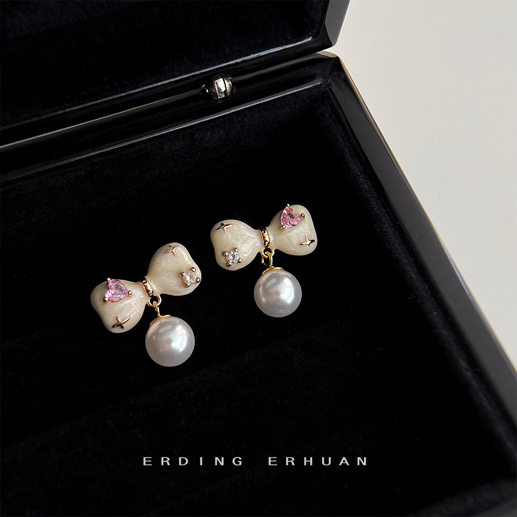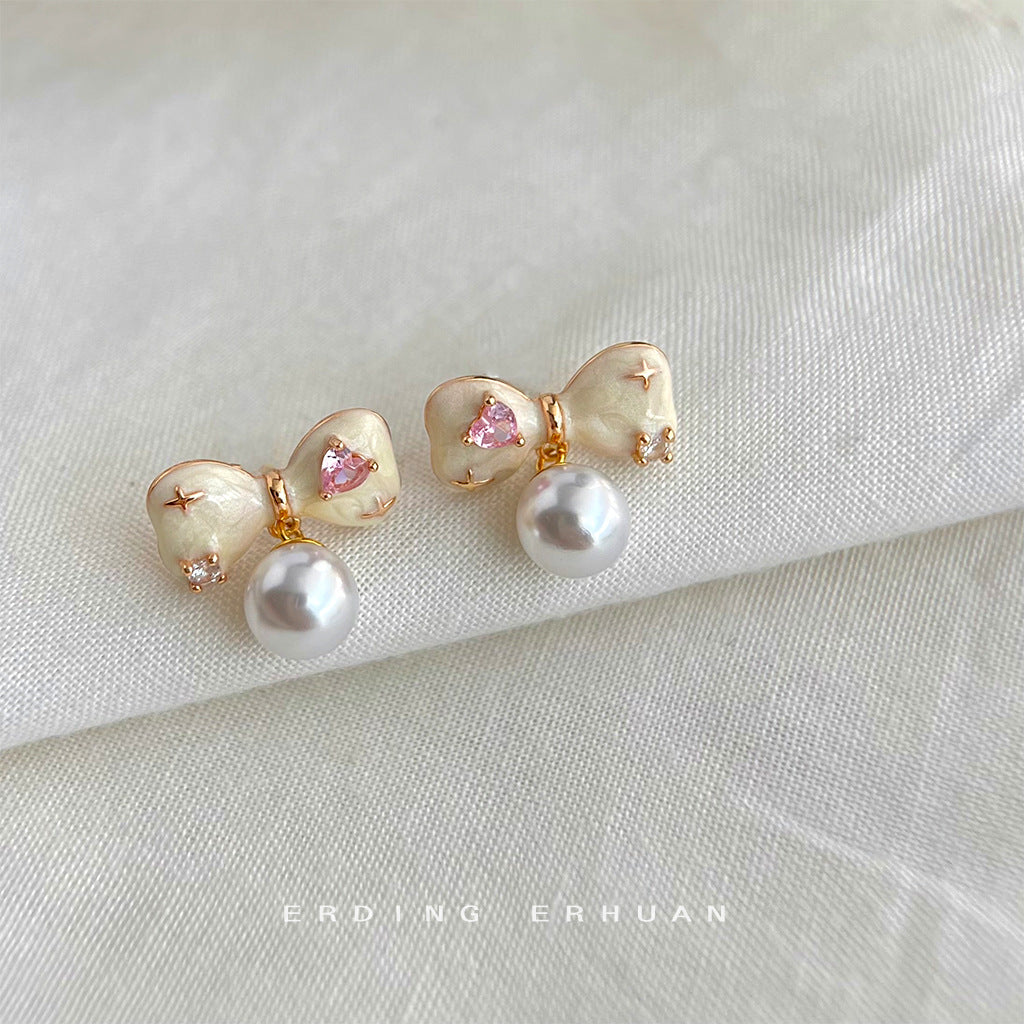 C廠【4655】微鑲鋯石手工滴釉蝴蝶結鍍14K清新甜美耳環2024年全新耳環 24.08-1