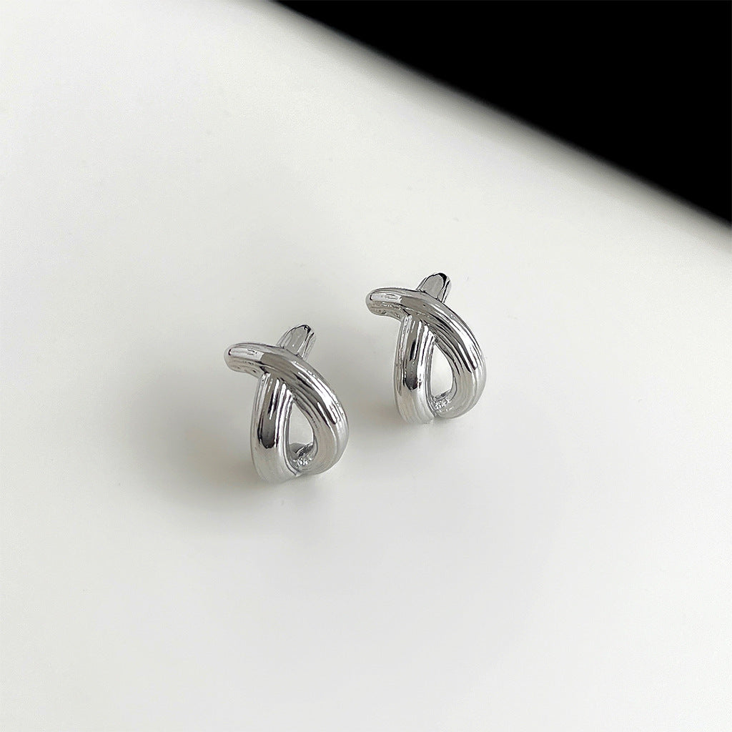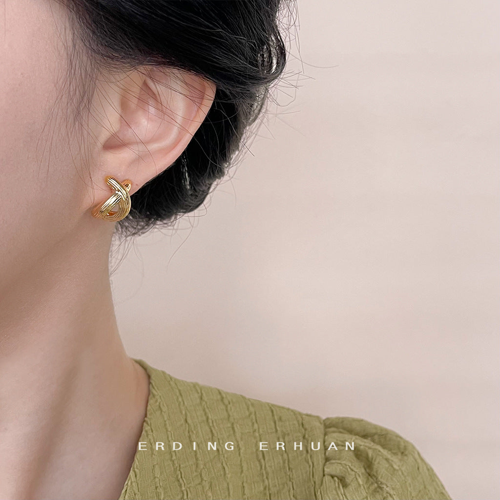 C廠【4664】時尚通勤高級感簡約風幾何立體交叉鍍14K耳環女小眾設計耳飾 24.08-1