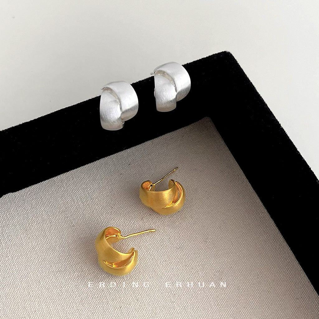 C廠【4666】時尚通勤輕奢風拉絲質感鍍14K霧面霧面幾何重疊耳環耳飾 24.08-1