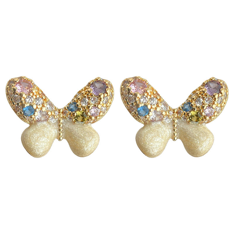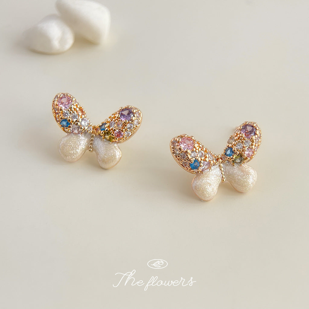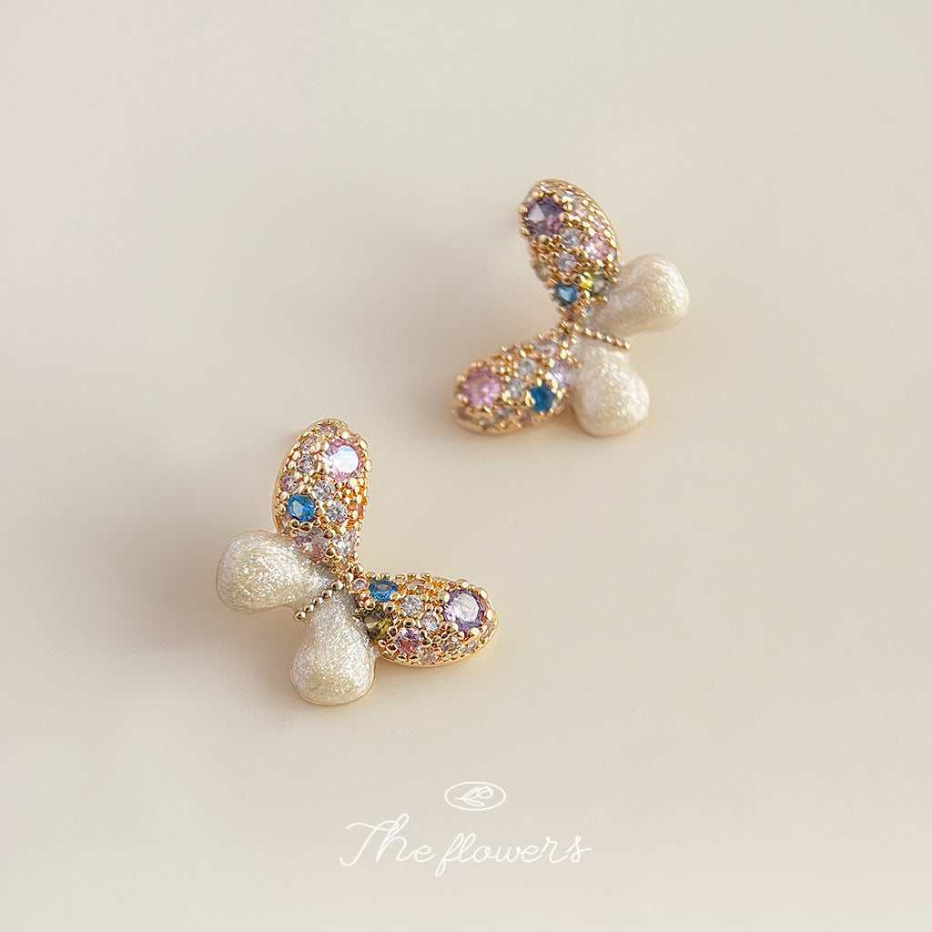 C廠【4679】清新甜美微鑲彩色鋯石夏日新款蝴蝶耳環鍍14K滴油耳飾女飾品 24.08-2