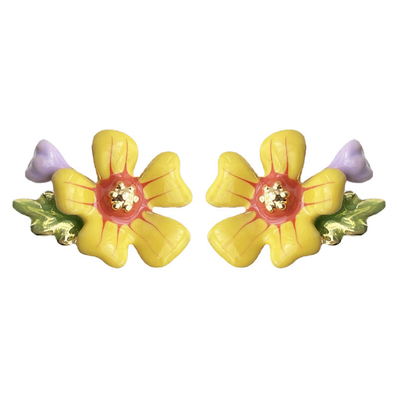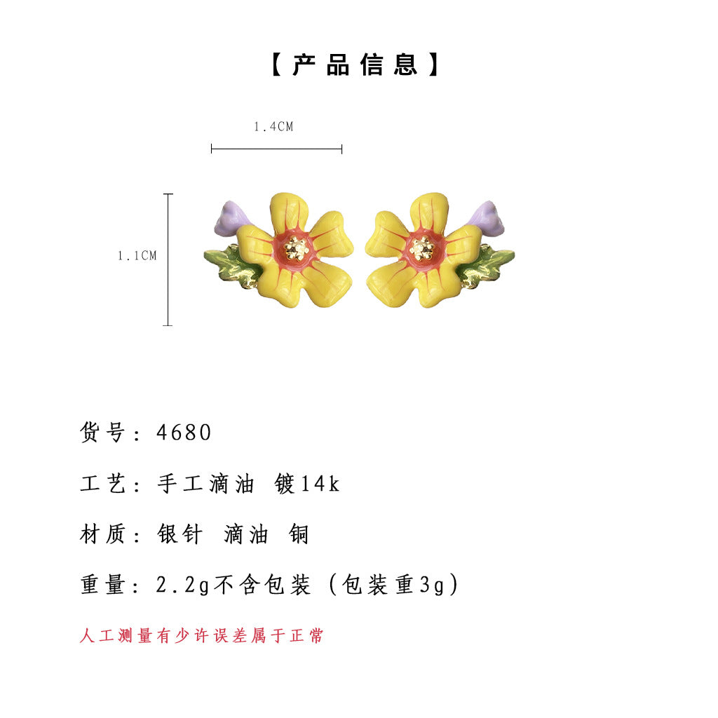 C廠【4680】森系小清新甜美可愛琺瑯滴釉小花鍍14K耳環簡約通勤耳飾飾品 24.08-2