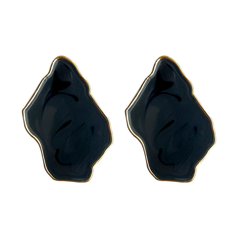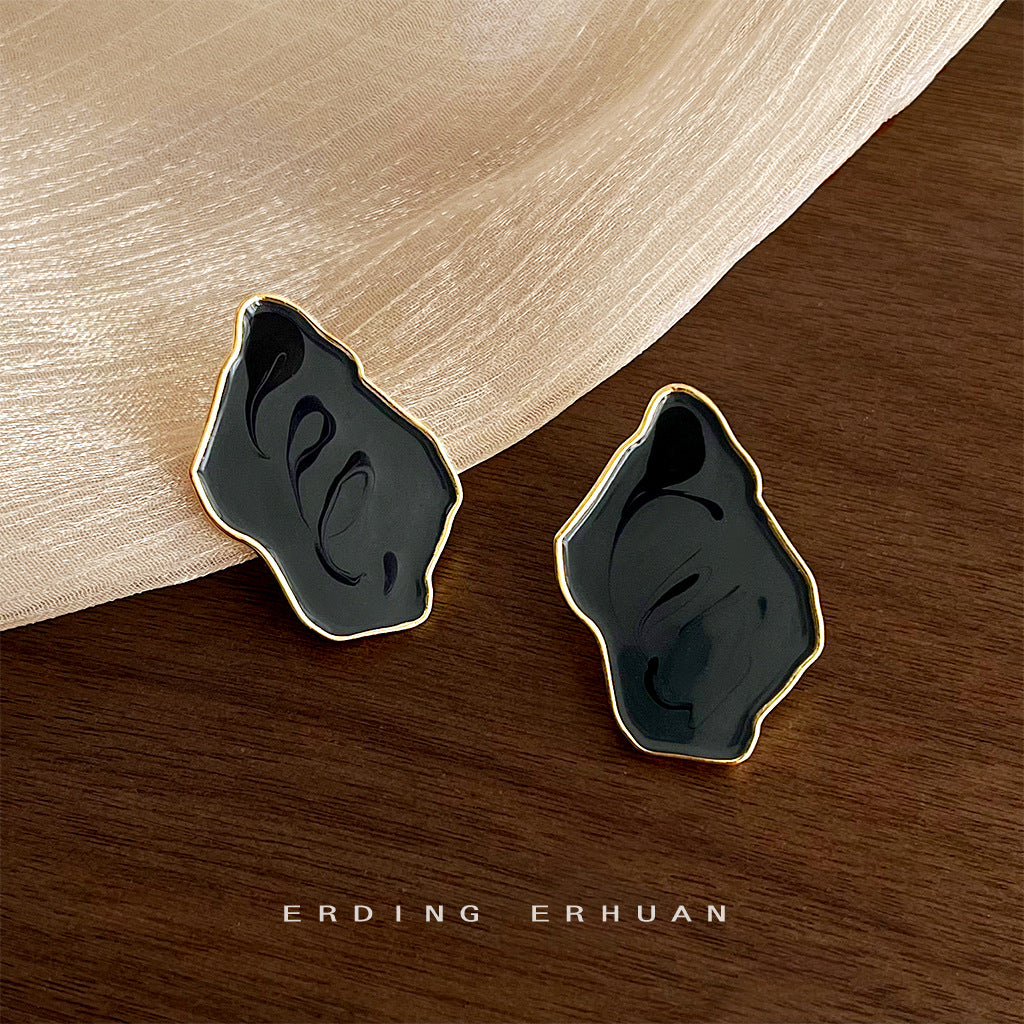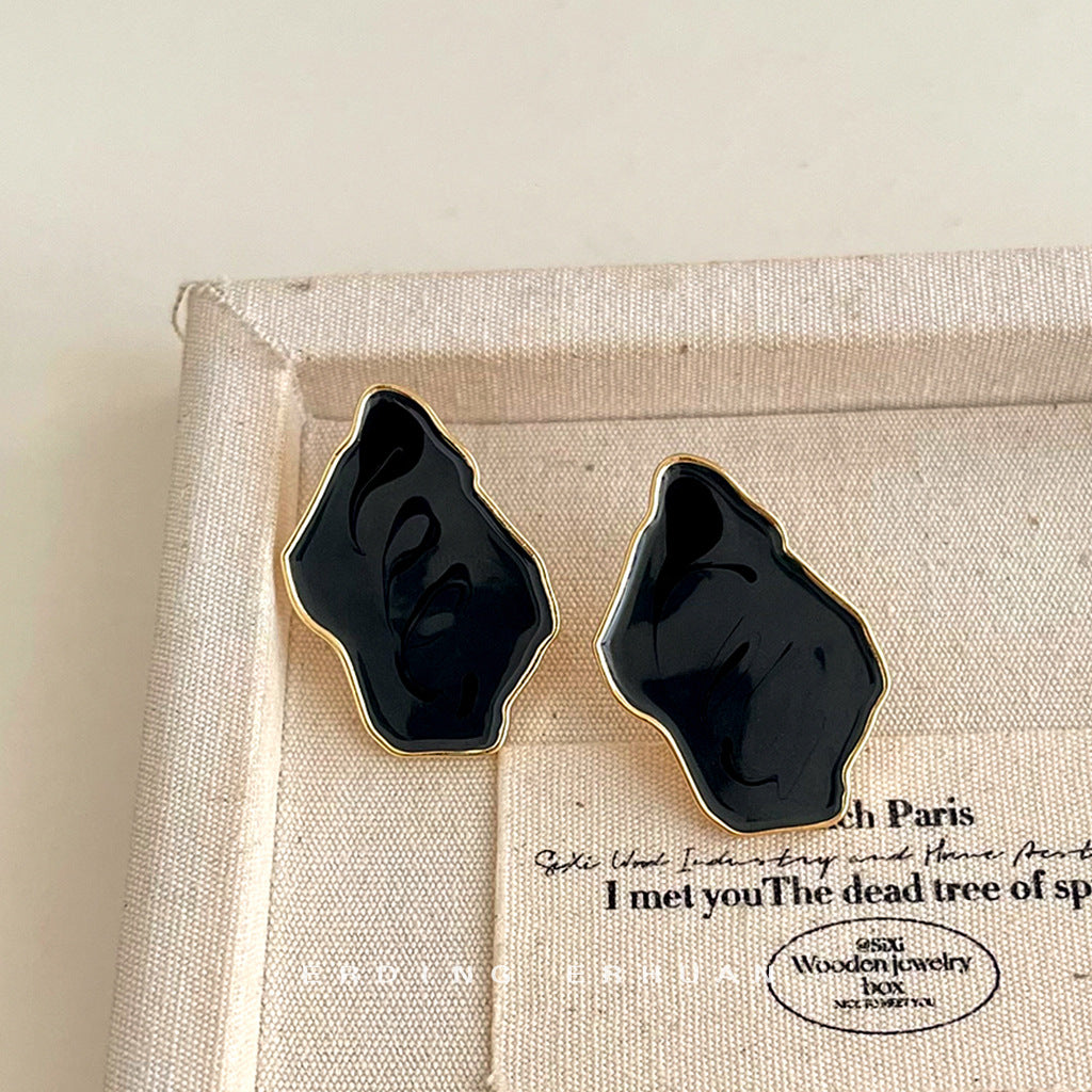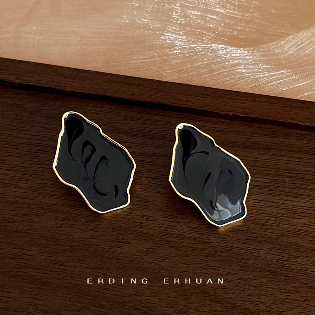 C廠【4694】文藝復古中古風鍍14K不規則設計師款滴油灰色高級感耳飾耳環 24.09-2