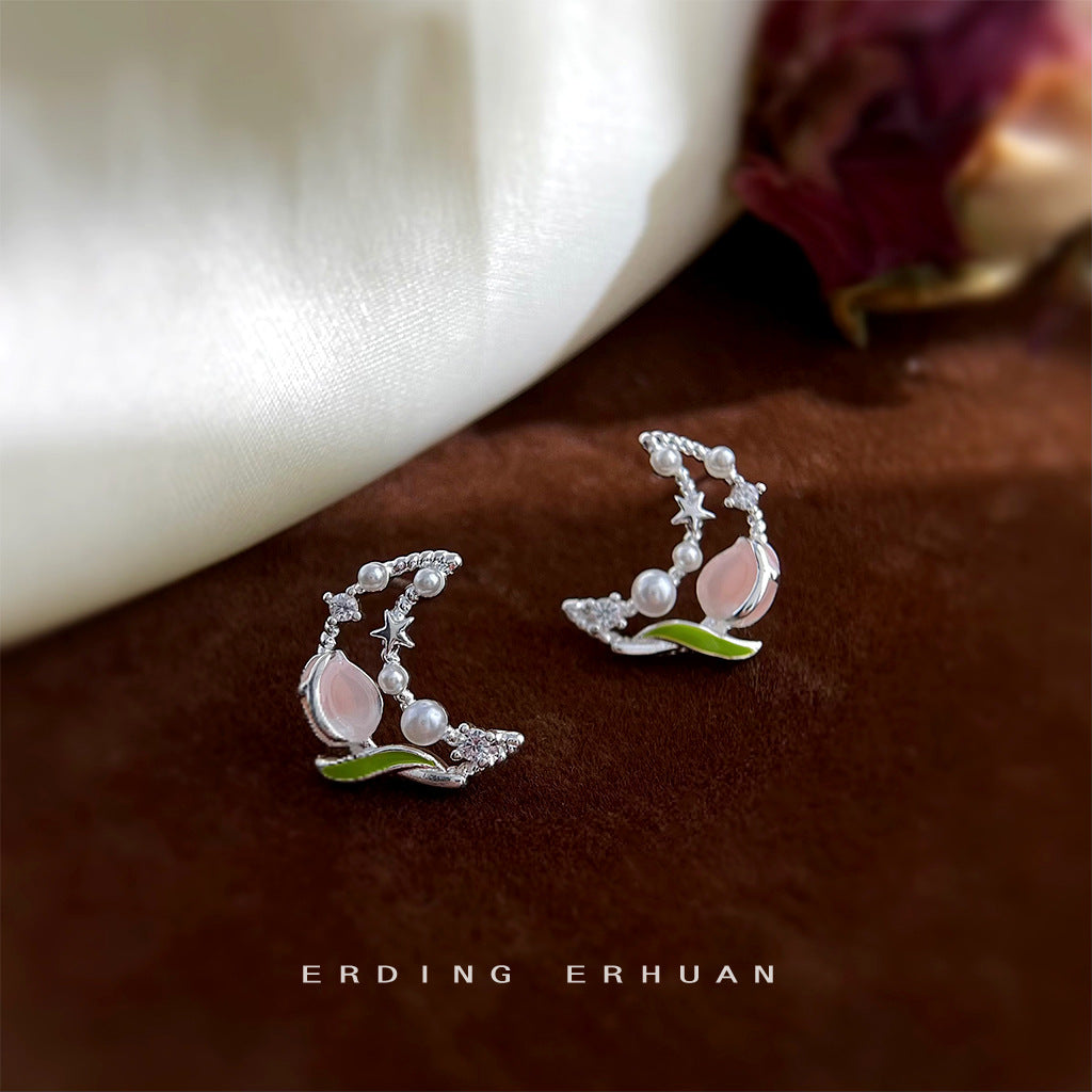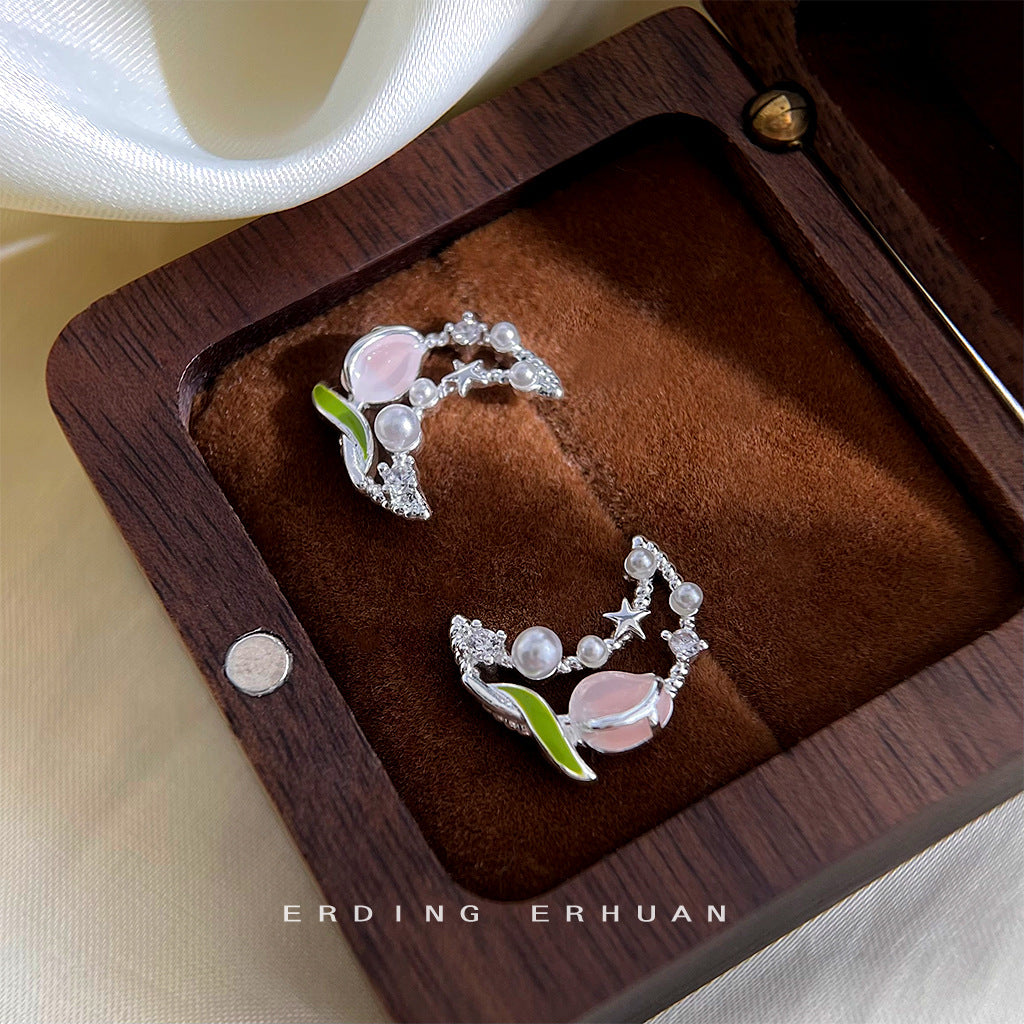 C廠【4710】設計師款清新甜美鬱金香月亮耳環優雅時尚通勤設計感新款耳飾 24.08-3