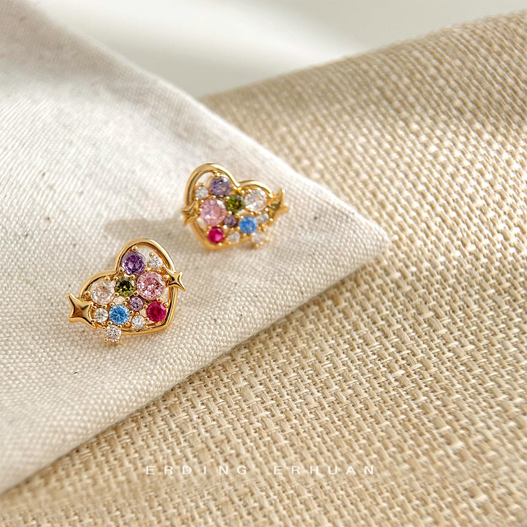 C廠【4712】清新甜美微信鋯石鍍14K愛心耳環氣質簡約時尚通勤輕奢風耳飾 24.08-3