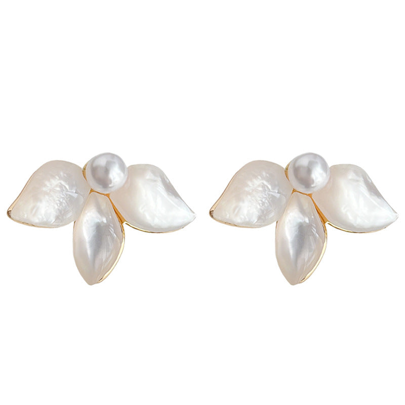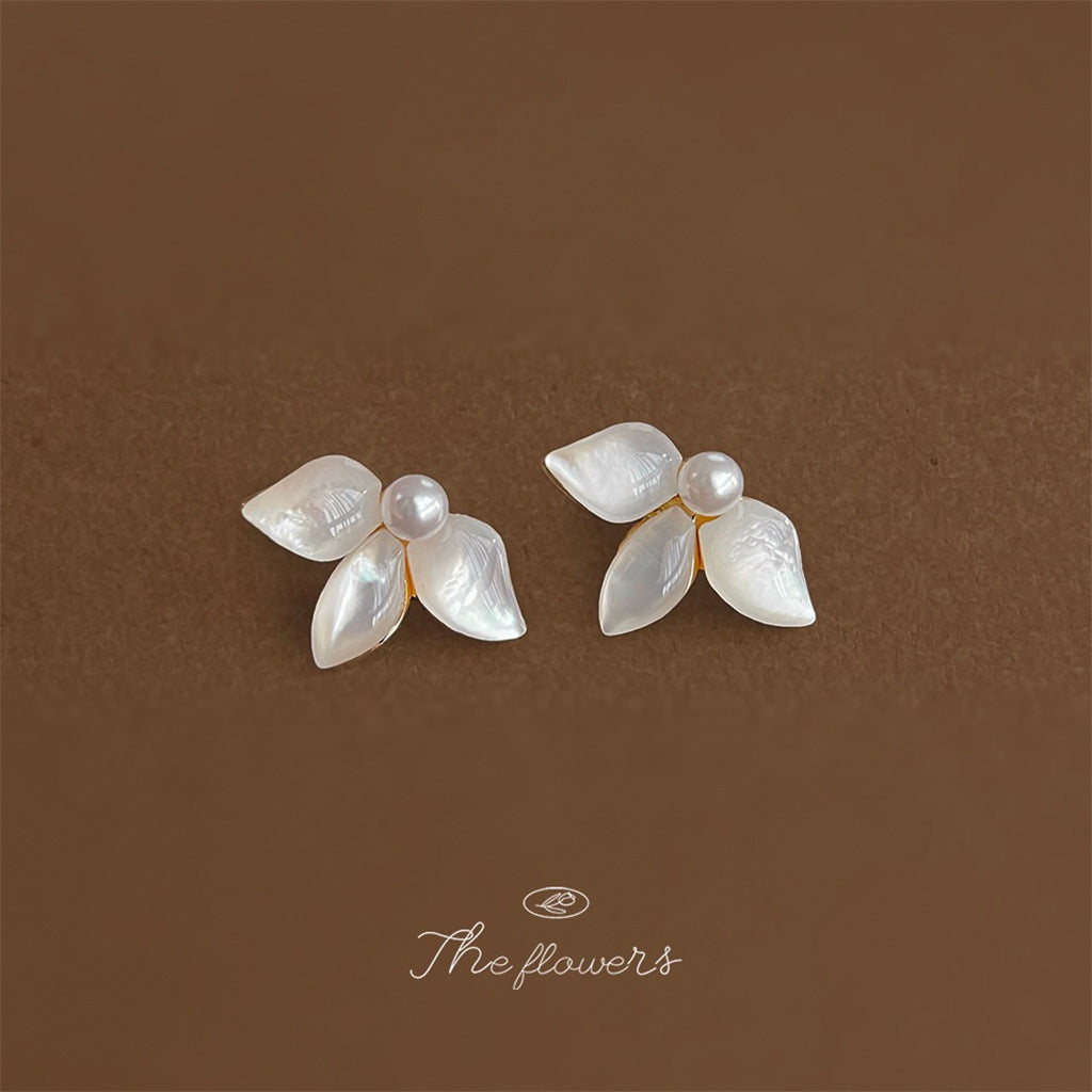 C廠【4733】真貝殼時尚通勤高級感輕奢風鍍14K優雅葉花耳環氣質耳飾 24.09-1