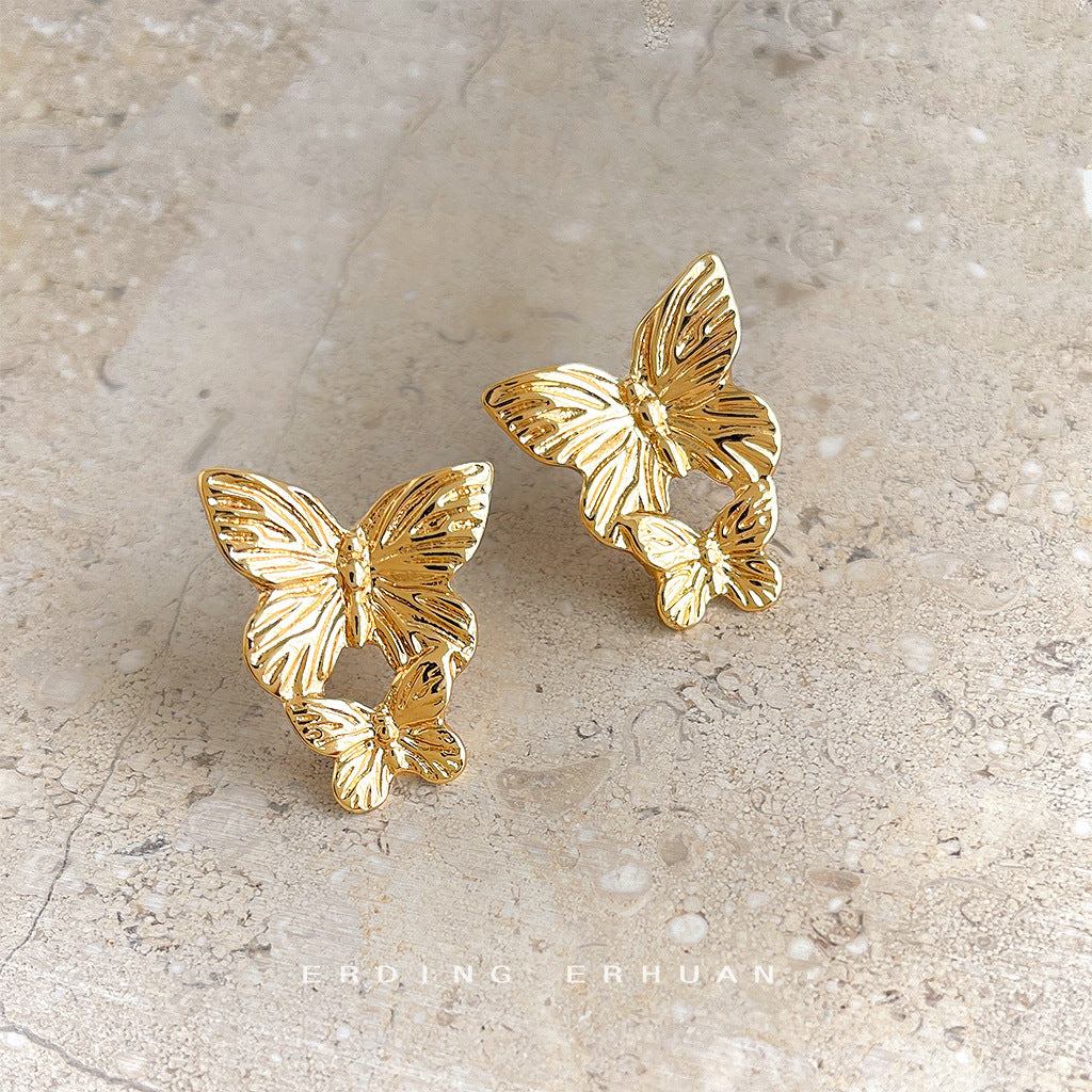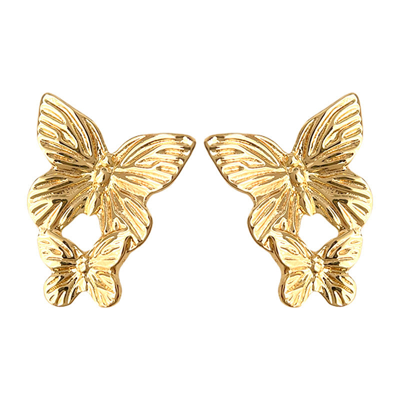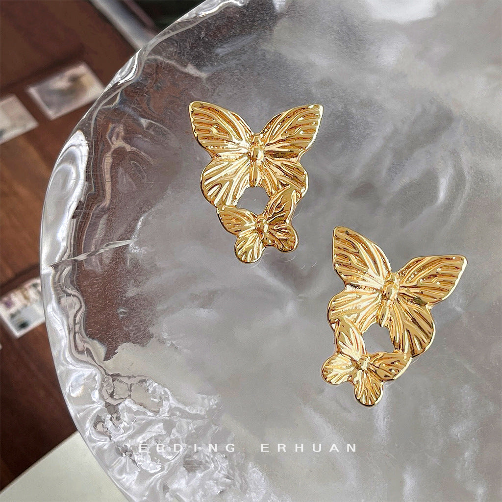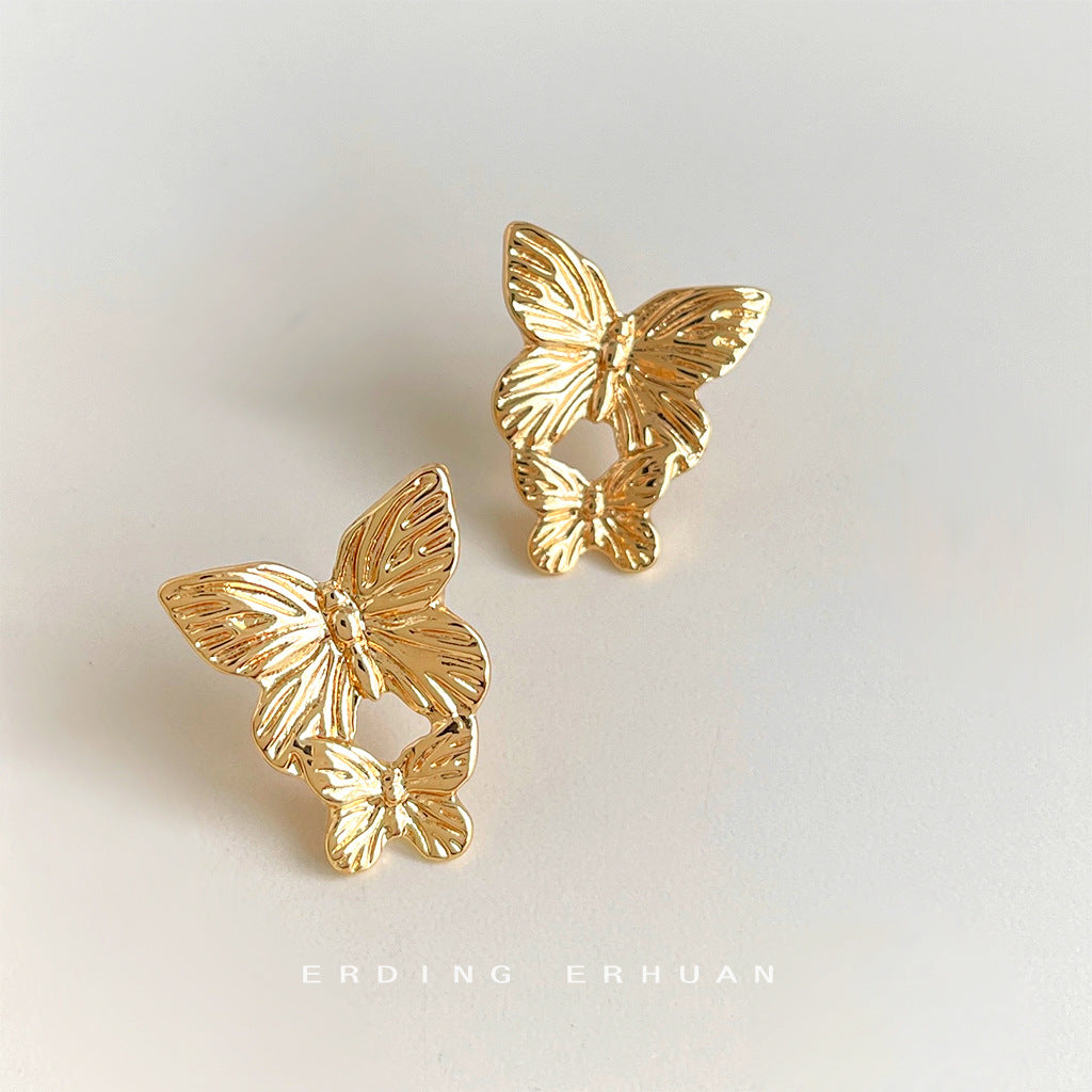 C廠【4751】法式雙蝴蝶電鍍14K時尚高級感百搭金屬感耳飾耳環耳環女 24.08-4
