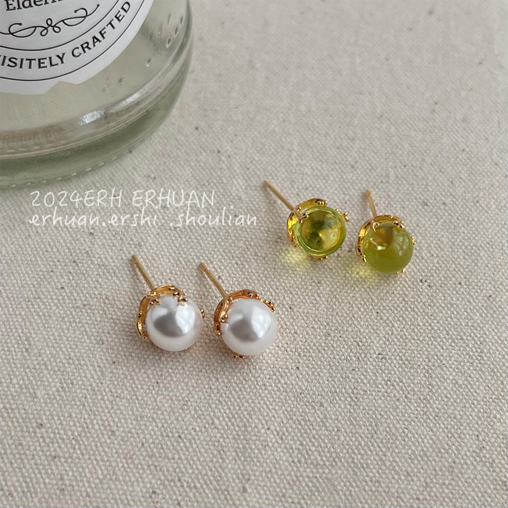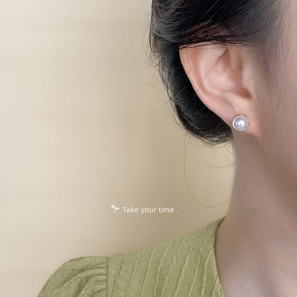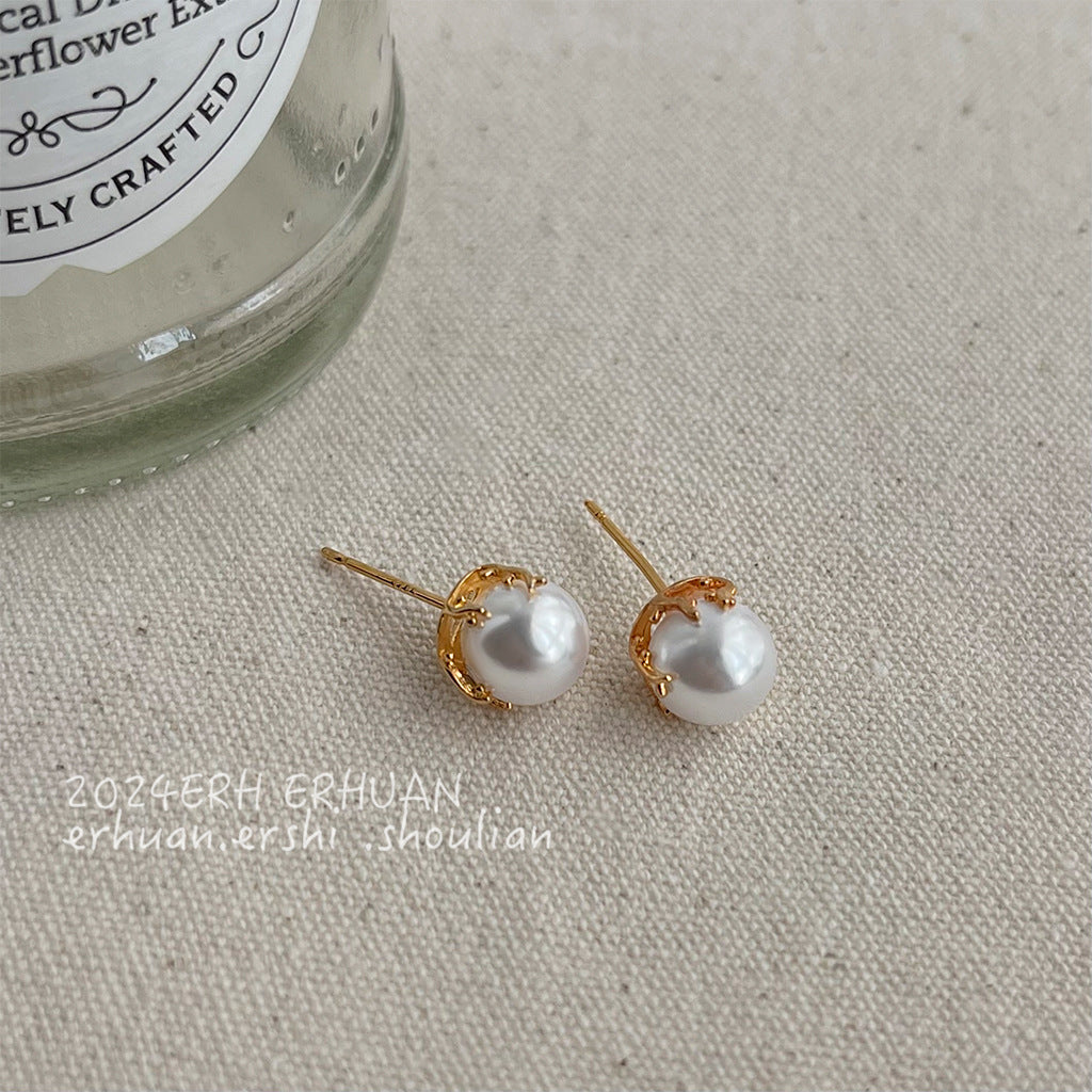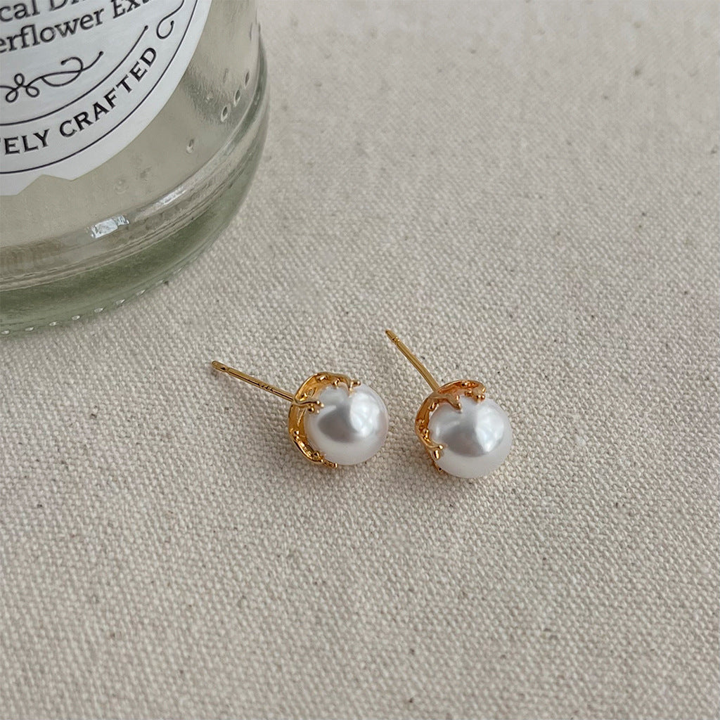 C廠【4754】時尚通勤高級感簡約風鍍14K圓形幾何珍珠耳環女氣質優雅新款耳環 24.08-4