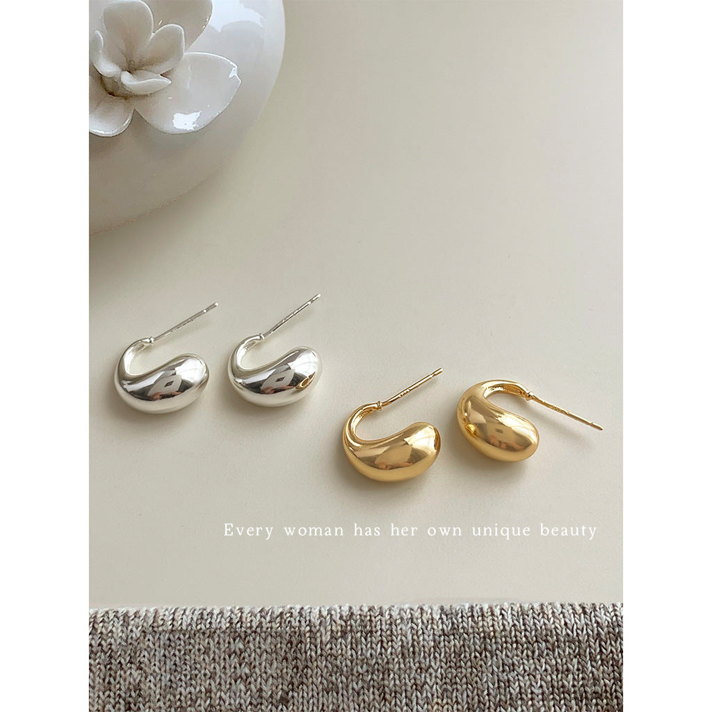 C廠【4756】時尚通勤鍍14K高級感輕奢風簡約百搭新款幾何豆耳環女水滴耳飾 24.09-1