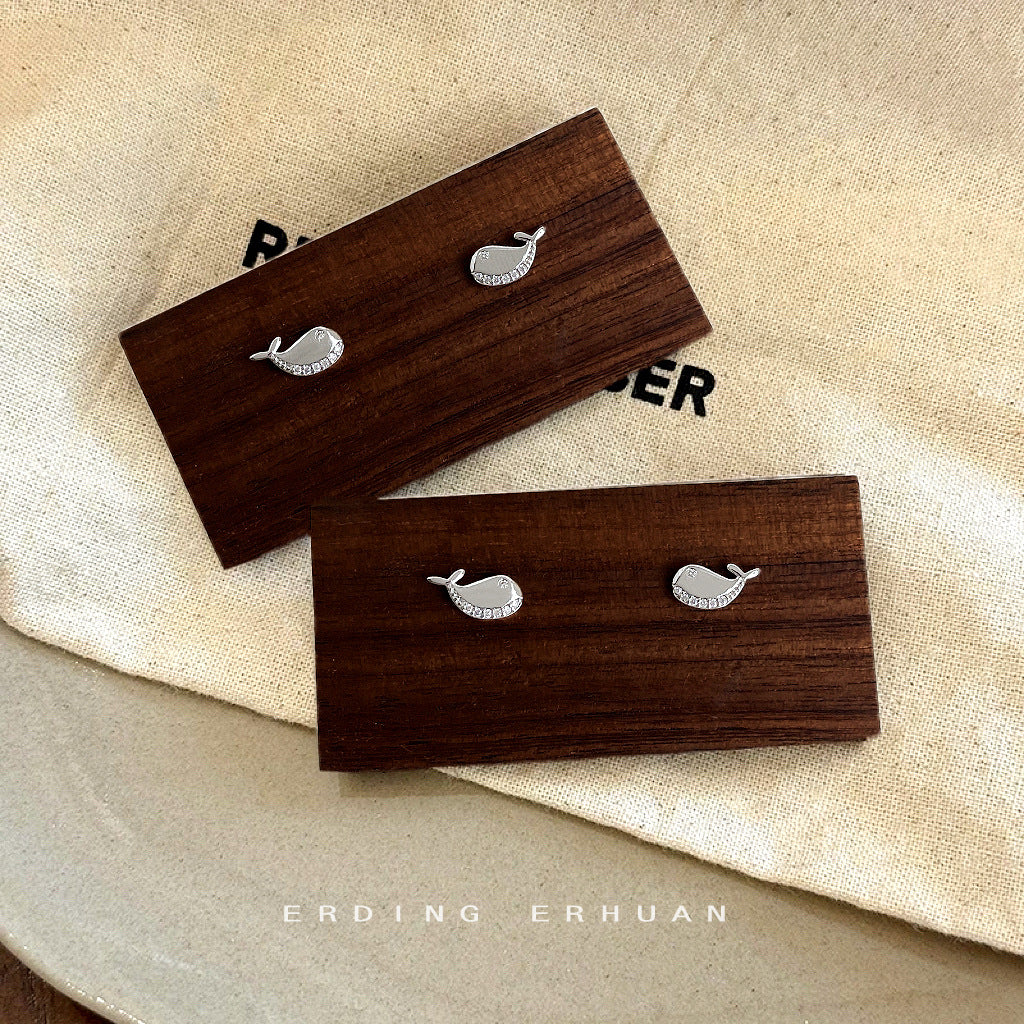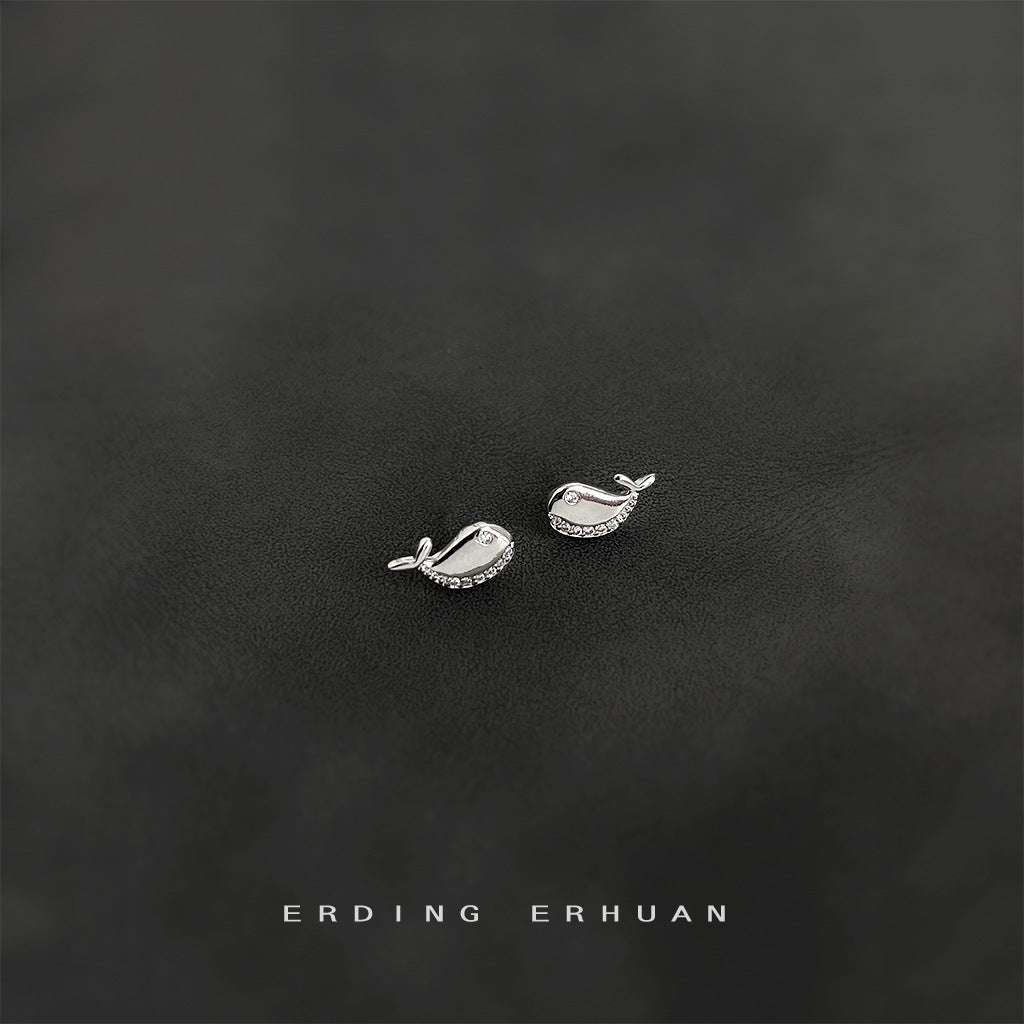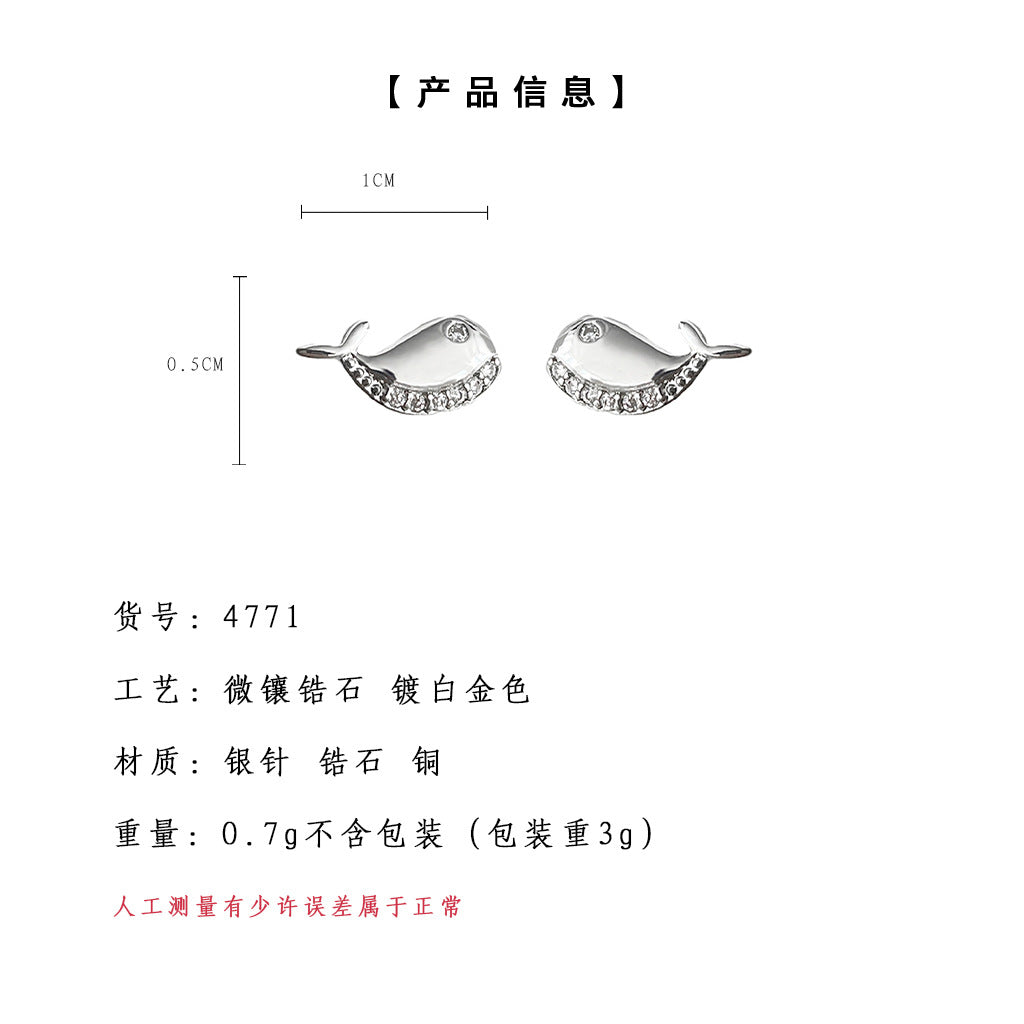 C廠【4771】微鑲鋯石簡約通勤迷你版小鯨魚耳環女氣質小清新耳環學生飾品 24.09-1