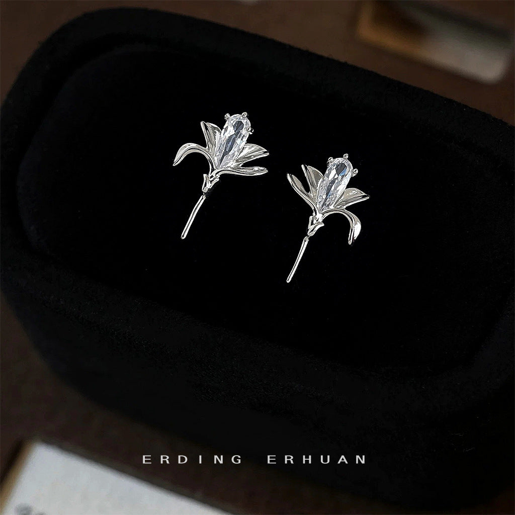 C廠【4776】個性甜酷風微鑲鋯石立體藝術花耳環 ins簡約創意新款耳環飾品 24.08-5