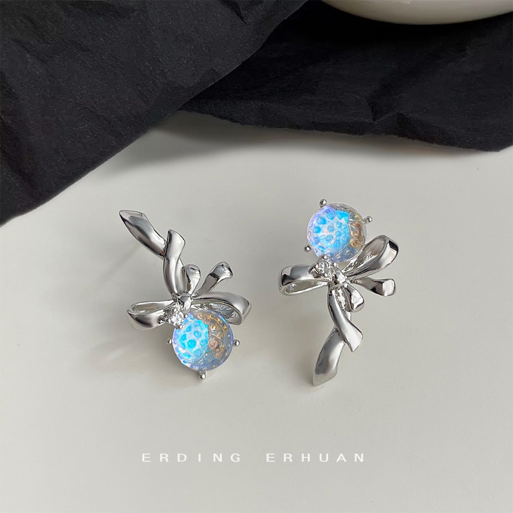 C廠【4783】不對稱設計感個性甜酷風液態蝴蝶結領結2024年新款耳環耳環女 24.08-5