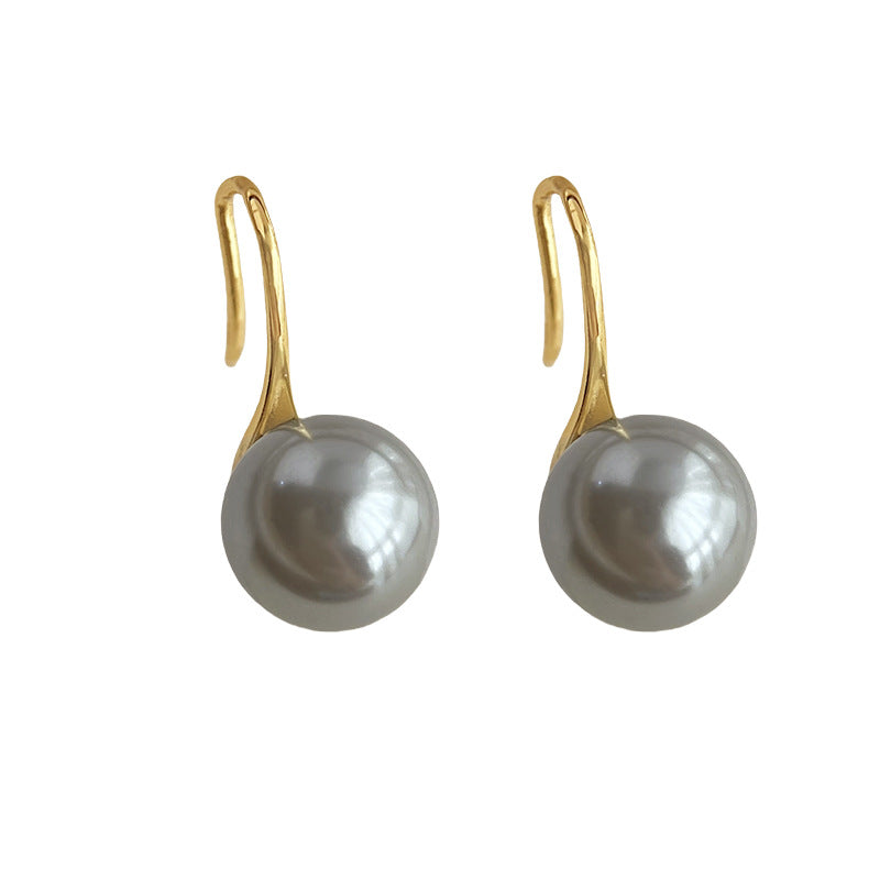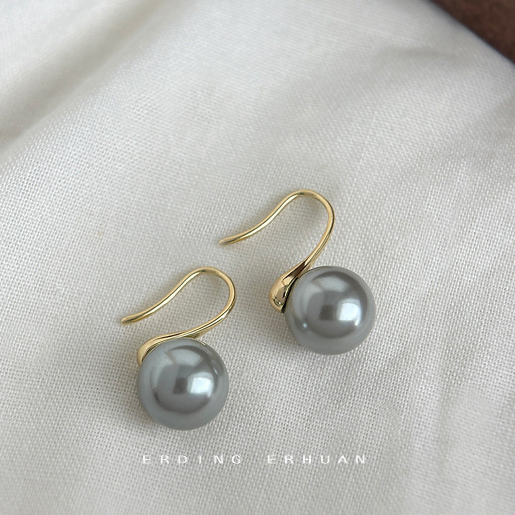 C廠【4812】施家玻璃珍珠高級感灰色耳環鍍14K簡約通勤耳環秋季飾品 24.09-1