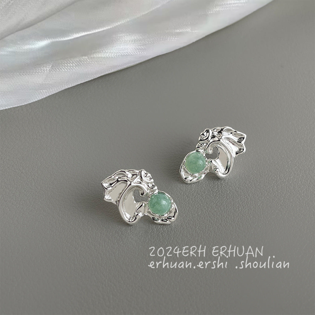 C廠【4822】海浪設計師款個性小眾文藝氣息不規則液態耳環女氣質耳飾 24.09-4