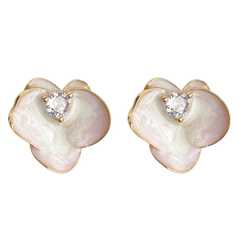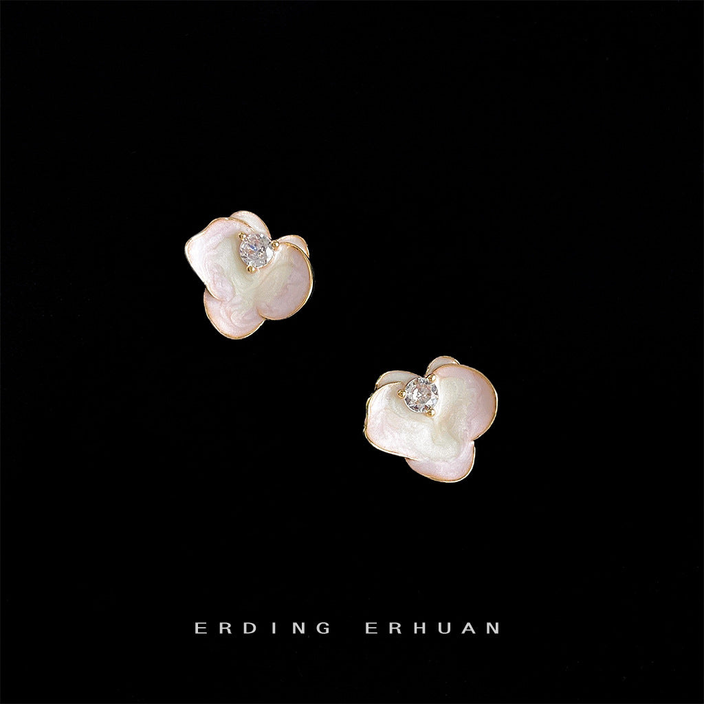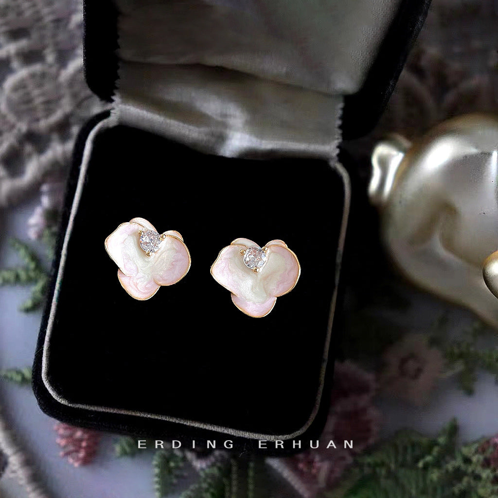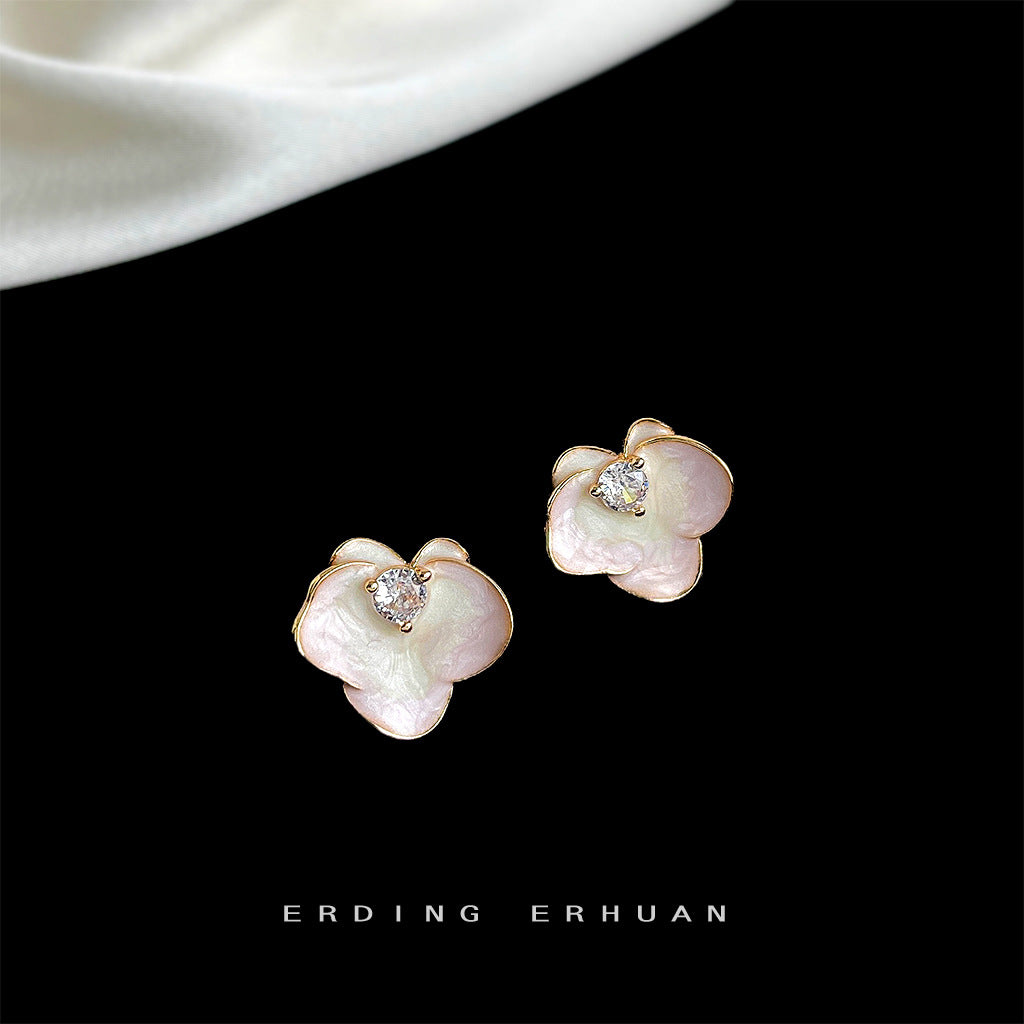 C廠【4831】清新甜美鍍14K微鑲鋯石琺瑯滴釉質感漸變粉色優雅耳飾蝴蝶蘭耳釘 24.09-2