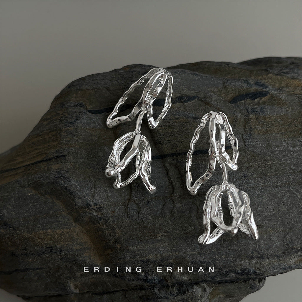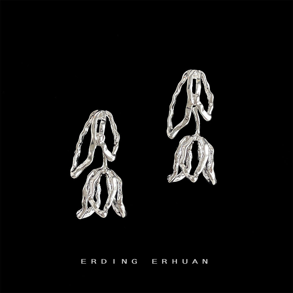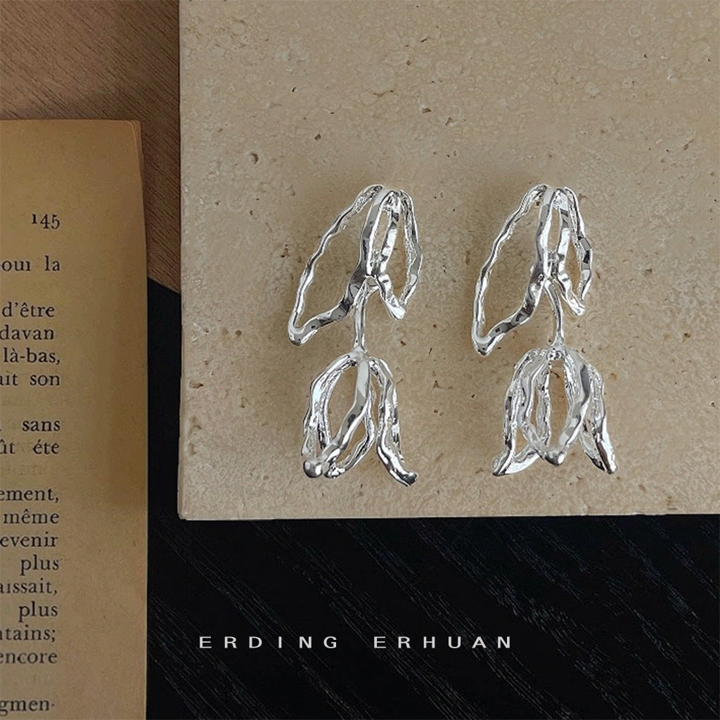 C廠【4836】小眾設計師款立體個性鬱金香液態甜酷風耳飾女2024年新款花朵耳環 24.09-2