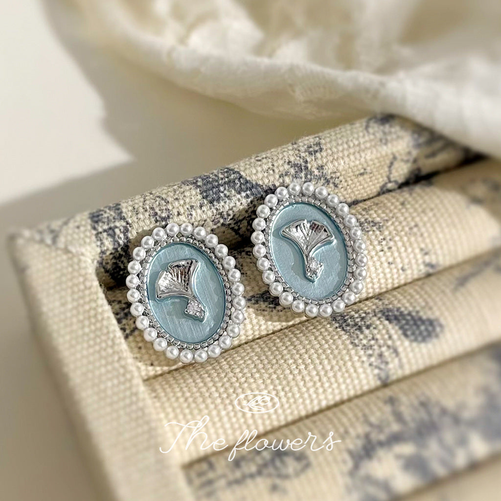 C廠【4845】法式復古橢圓銀杏葉幾何耳環女2024年新款耳環飾品女 24.09-2