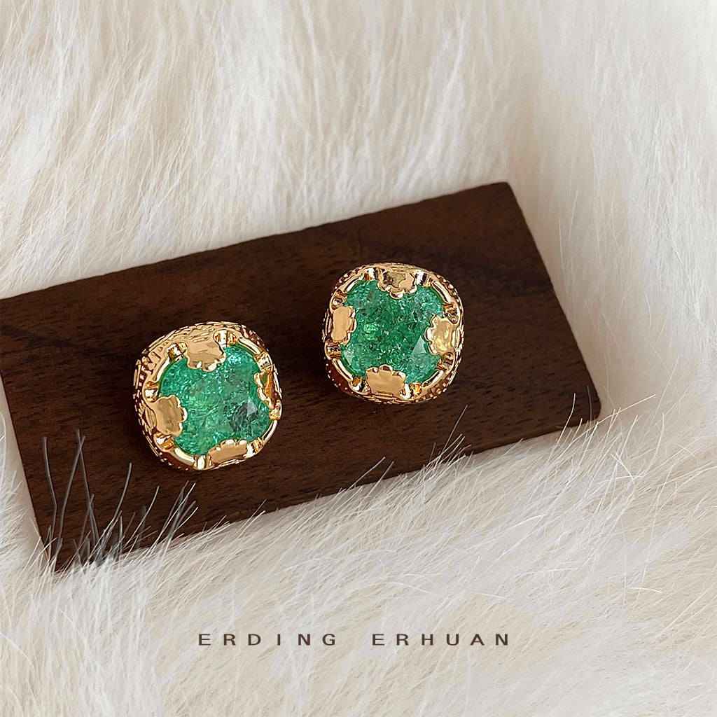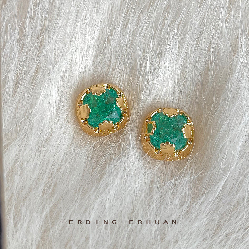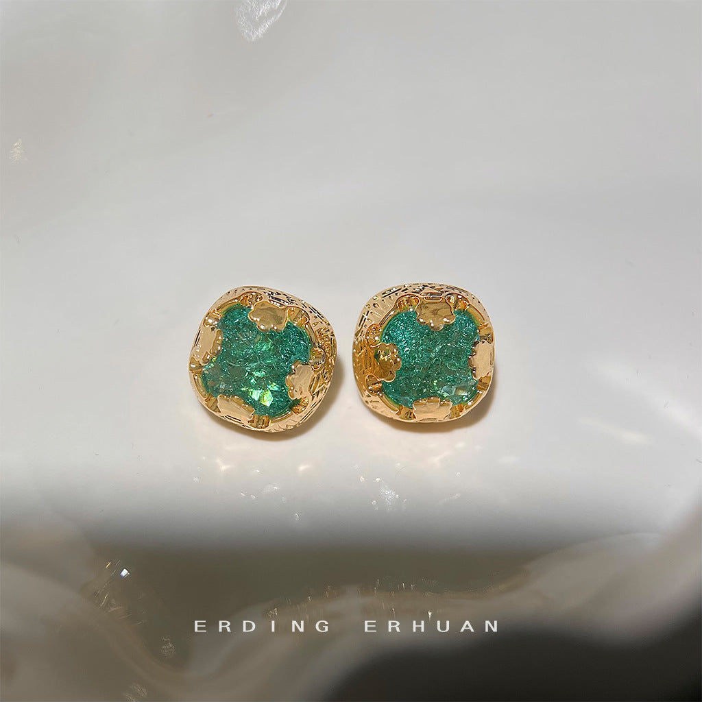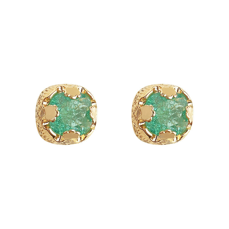 C廠【4869】時尚通勤冰花鋯石湖水綠高級感輕奢風方形幾何鍍14K耳環耳飾 24.09-3