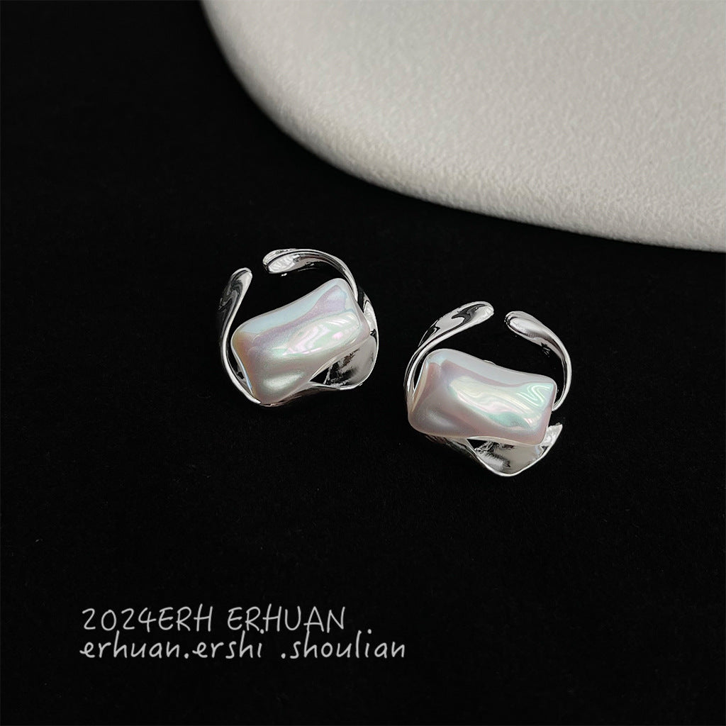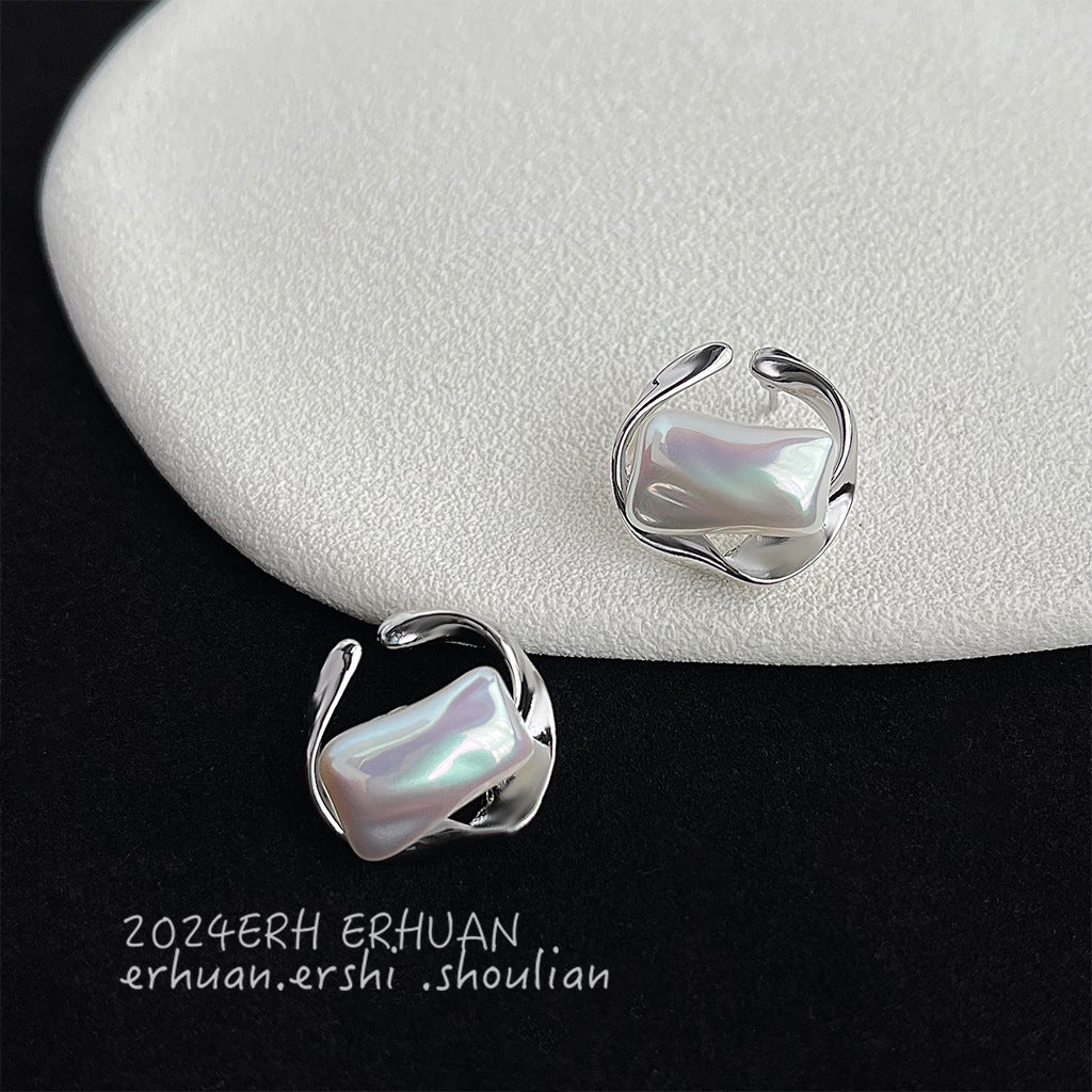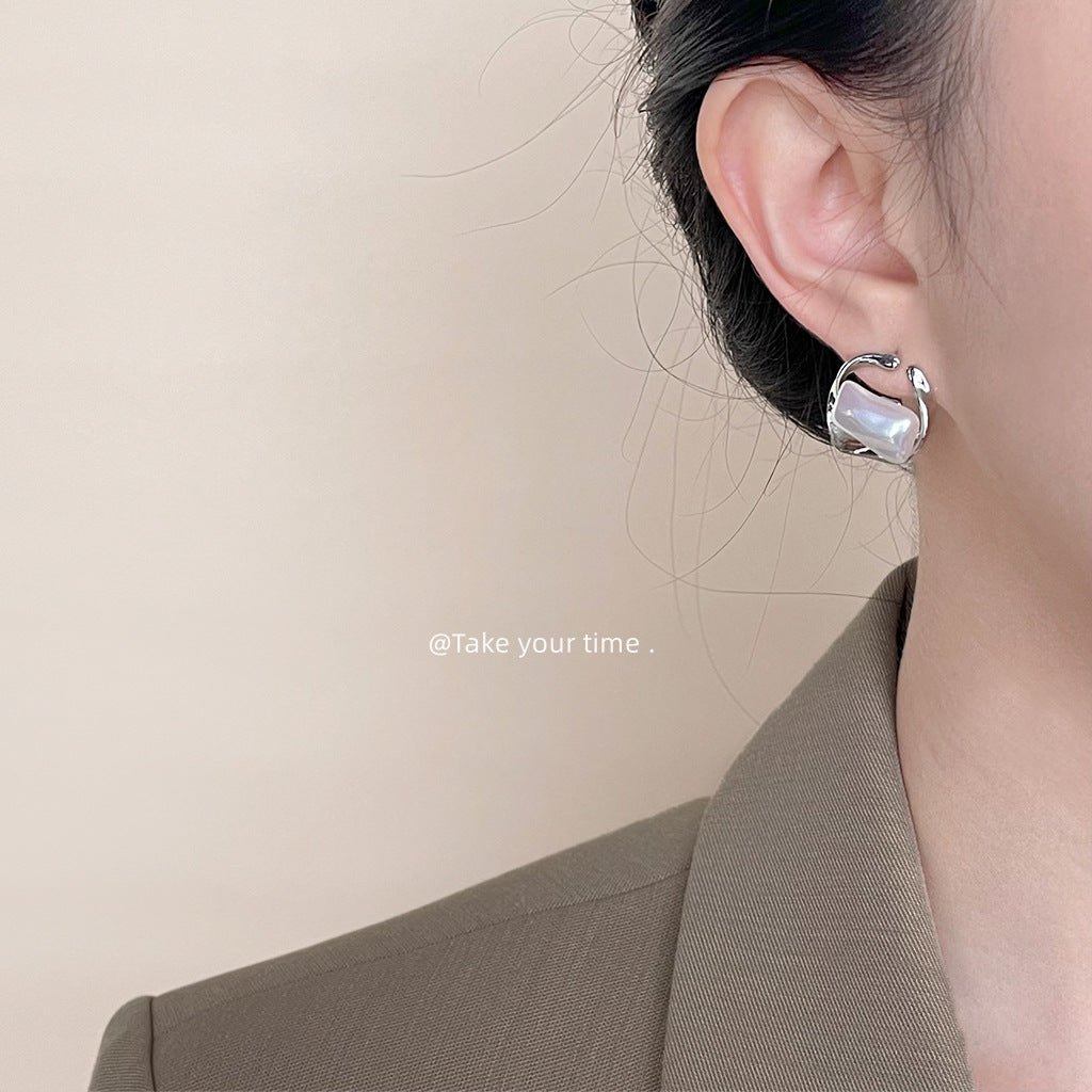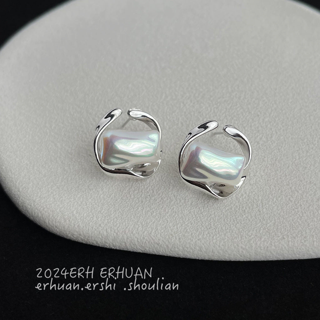 C廠【4870】法式銀色幾何珍珠耳環女時尚小眾設計高級感耳環藝術耳飾2024年潮 24.09-3