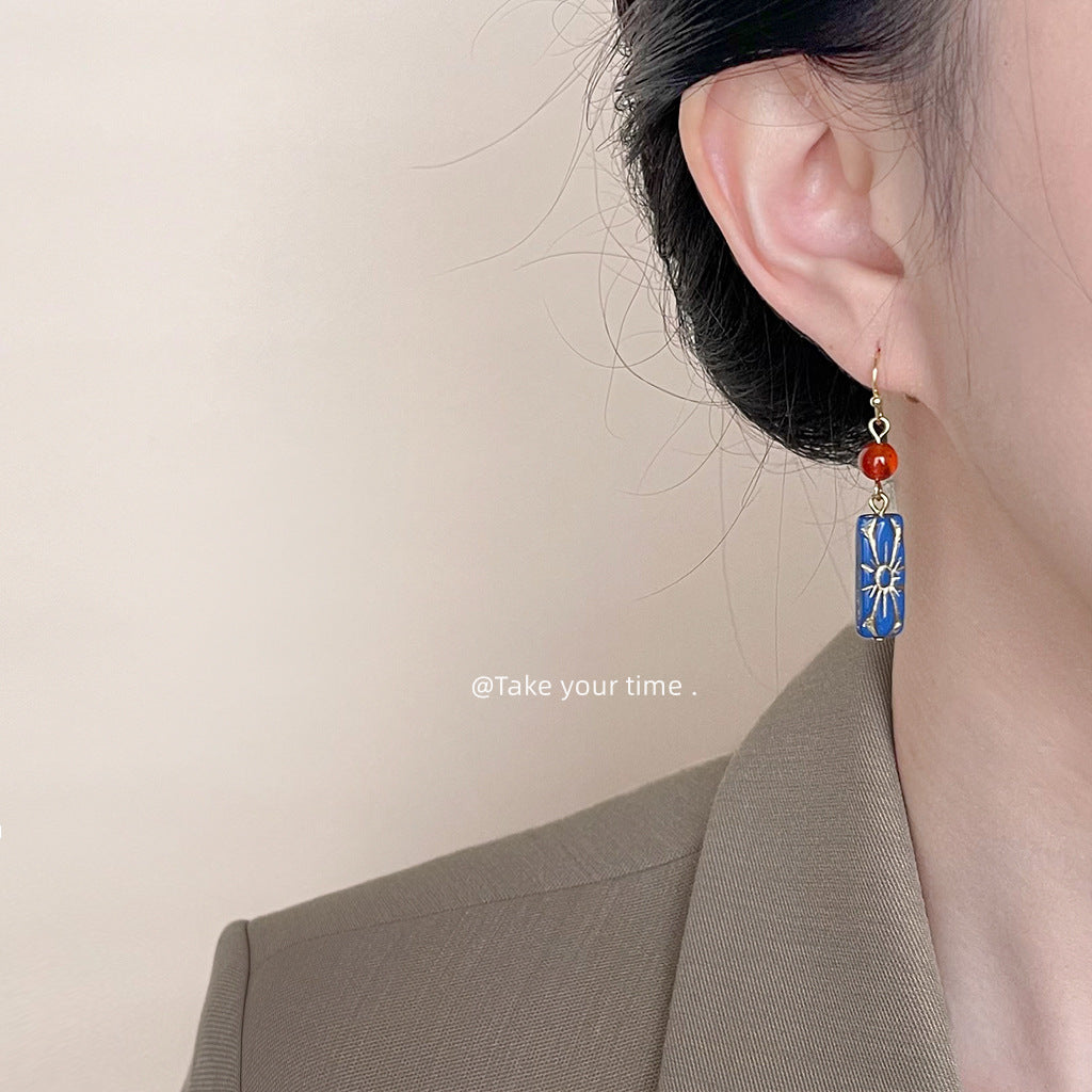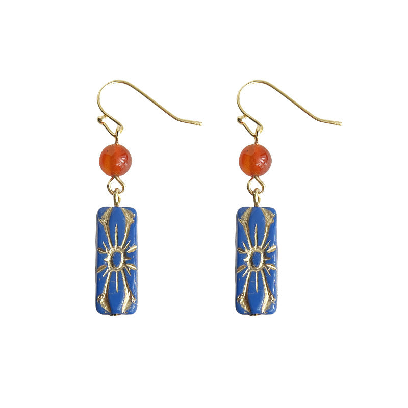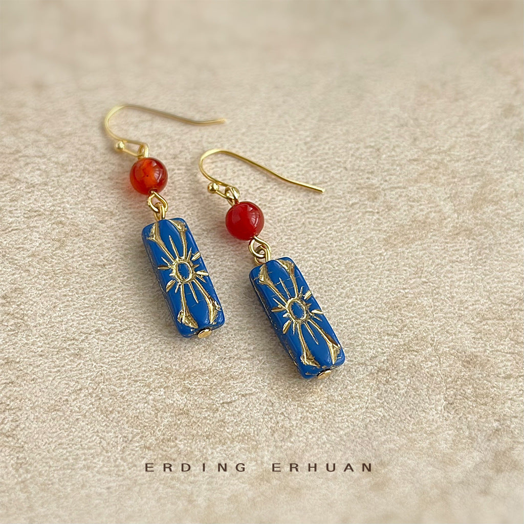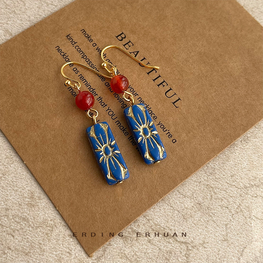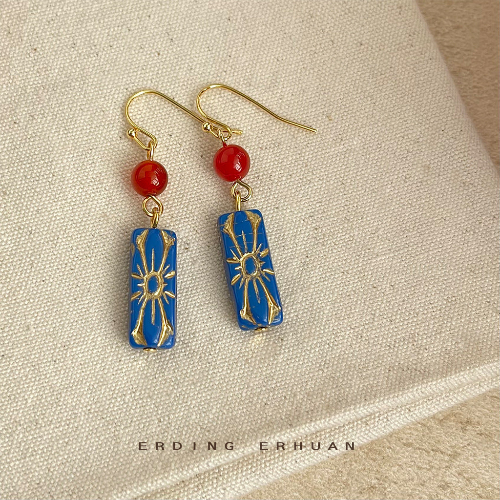 C廠【4871】捷克琉璃手工藝設計師款新中式長方幾何手工耳飾2024年新款耳環 24.09-4