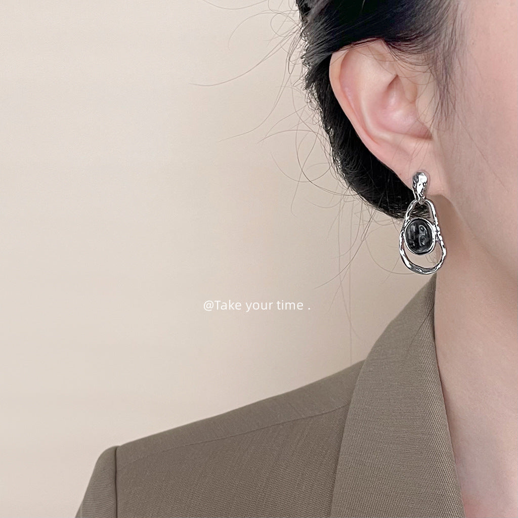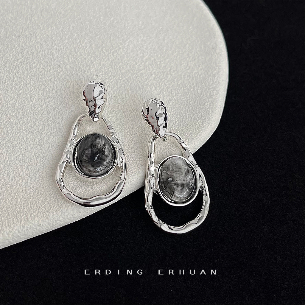 C廠【4872】水墨色系新中式不規則藝術氣息鏤空幾何2024新款耳環耳環 24.09-3