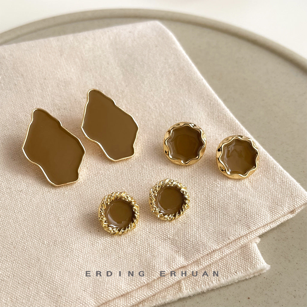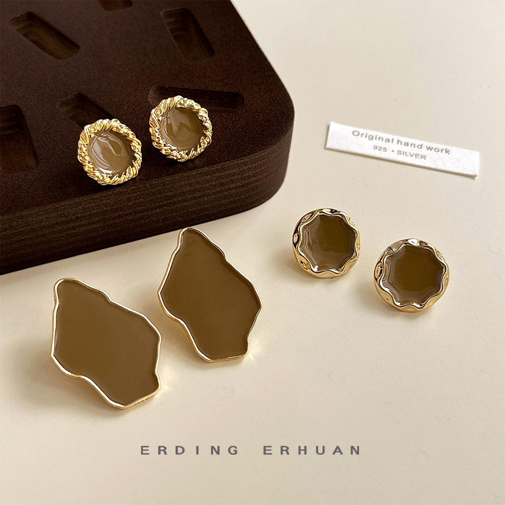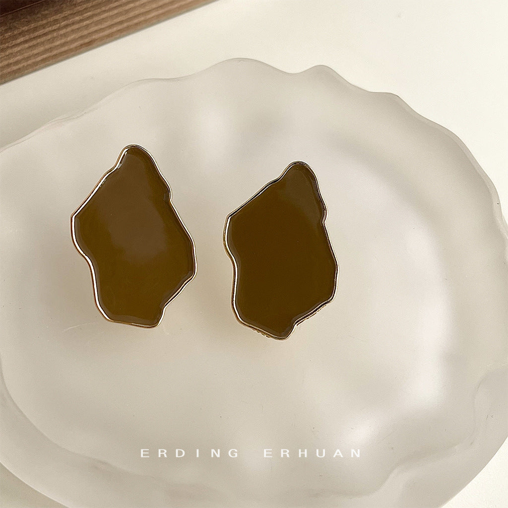 C廠【4892】苔原綠秋冬新款色系電鍍14K復古滴油不規則異形耳飾耳環 24.09-3