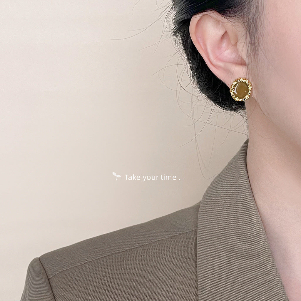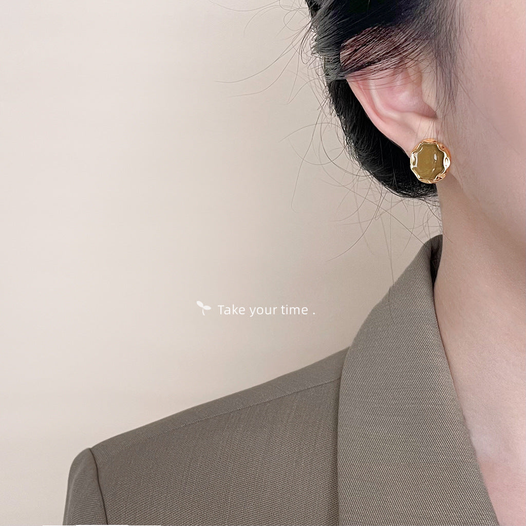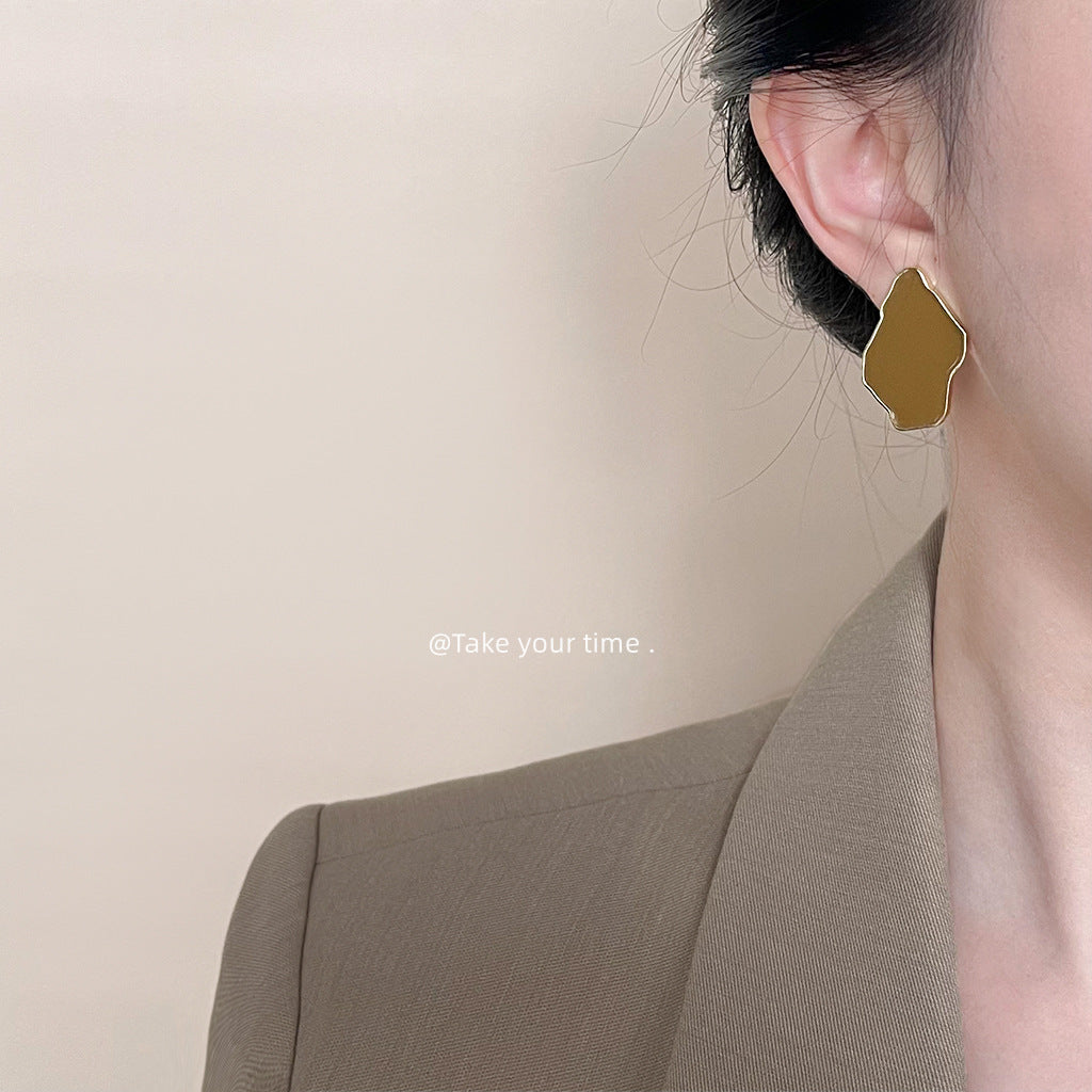 C廠【4892】苔原綠秋冬新款色系電鍍14K復古滴油不規則異形耳飾耳環 24.09-3