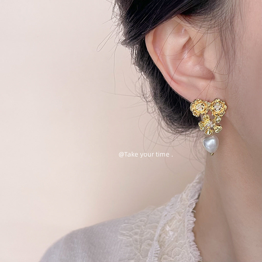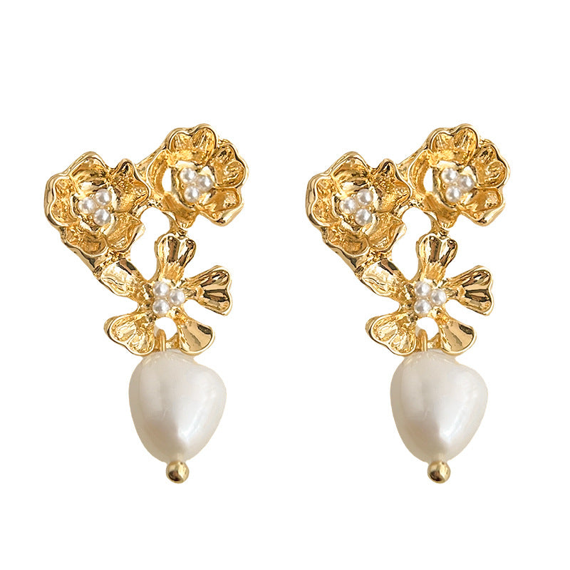 C廠【4926】巴洛克異形淡水珍珠鍍14K手工設計感繁花耳環女氣質優雅耳環 24.09-4