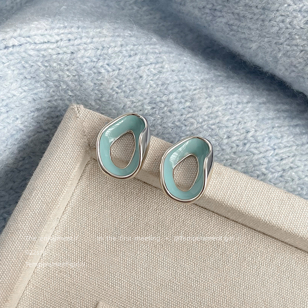 C廠【4952】時尚通勤冰河藍鏤空幾何立體休閒風耳飾2024年原廠設計耳環女 24.10-2