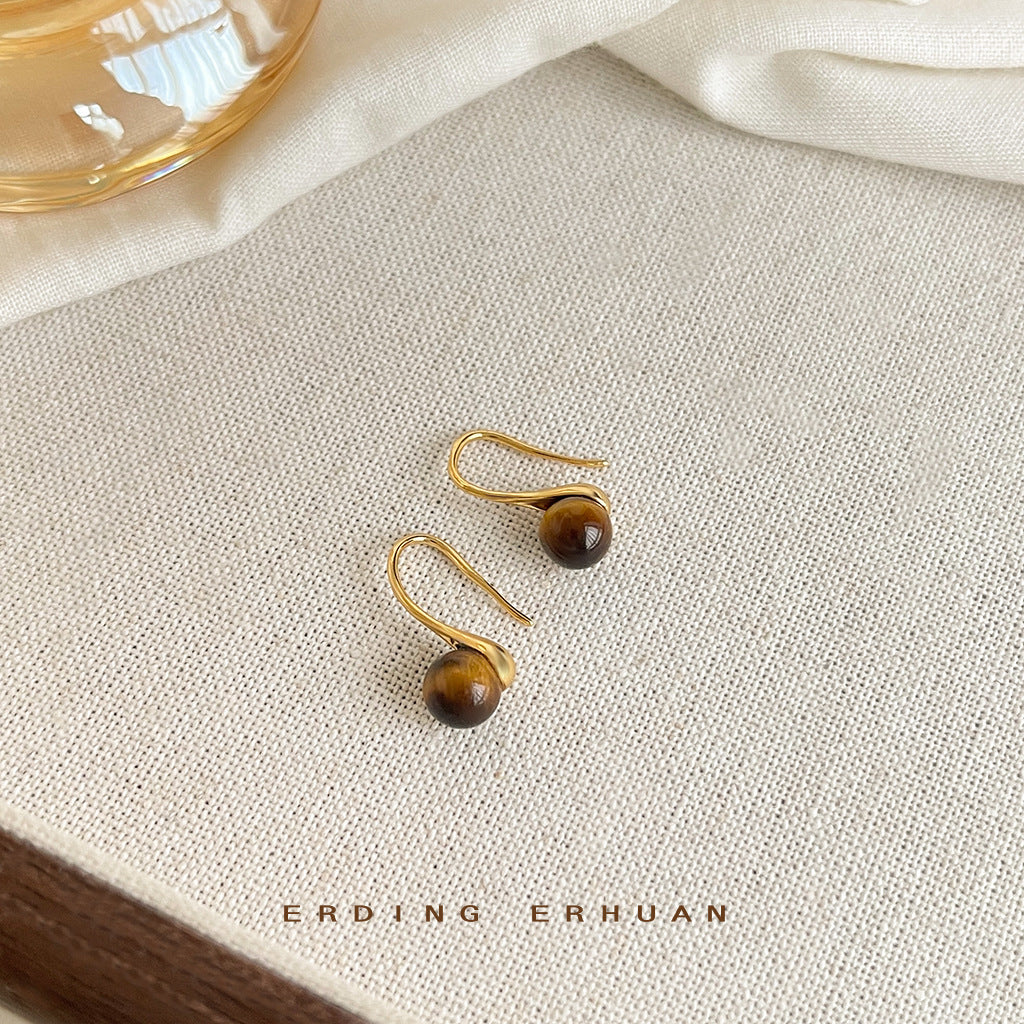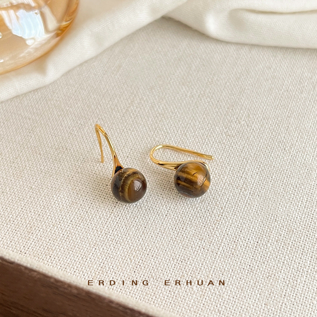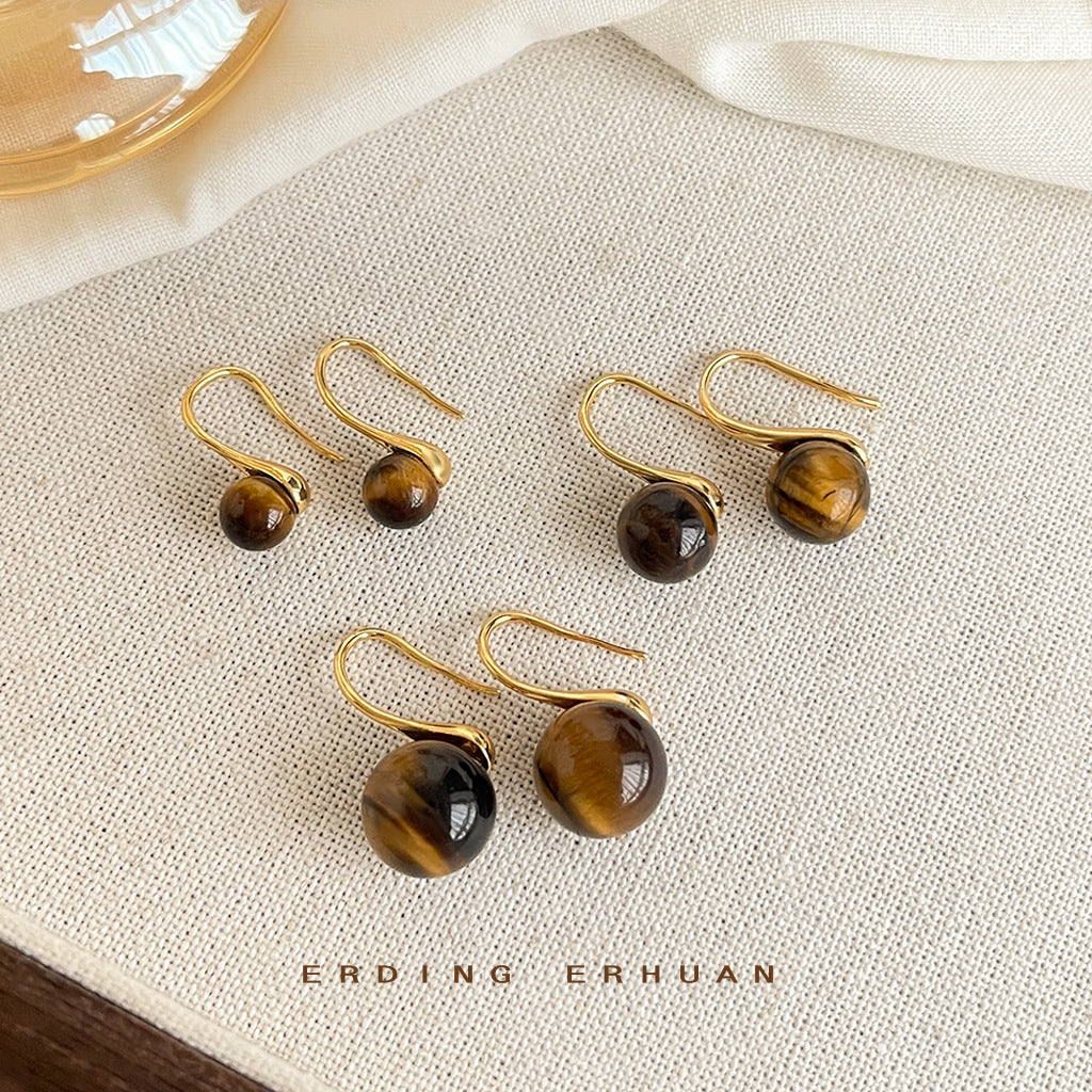 C廠【4953】虎眼石~時尚通勤鍍14K高級感簡約百搭圓形幾何球耳飾耳環女 25.11-1