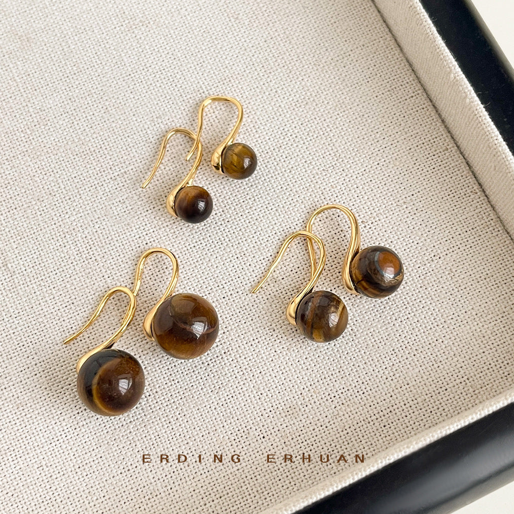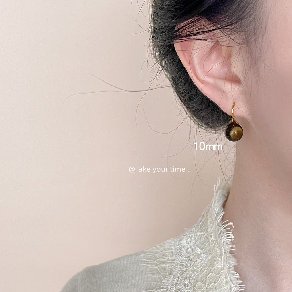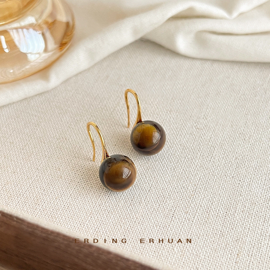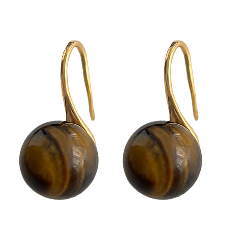 C廠【4953】虎眼石~時尚通勤鍍14K高級感簡約百搭圓形幾何球耳飾耳環女 25.11-1