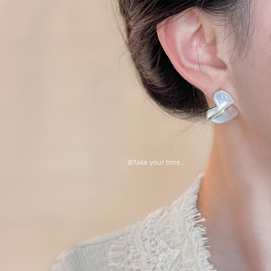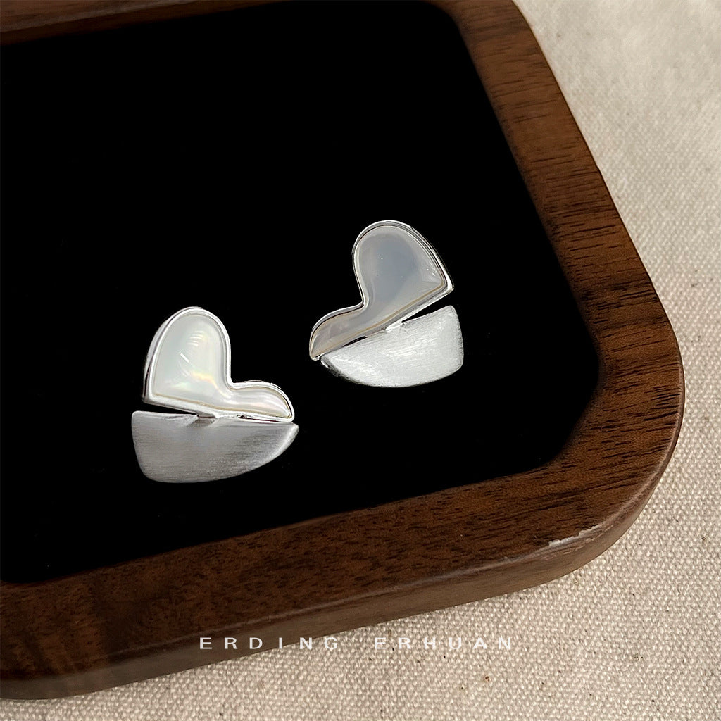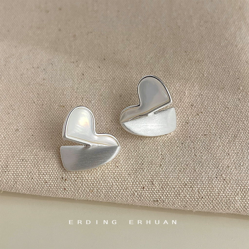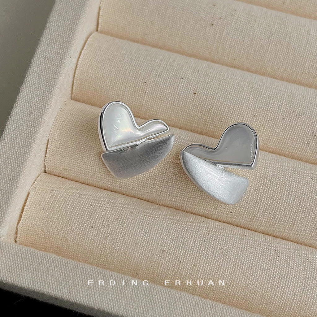 C廠【4957】【折耳桃心】真貝殼通勤百搭冷淡風愛心耳環高級設計感個性耳環品 25.02-2