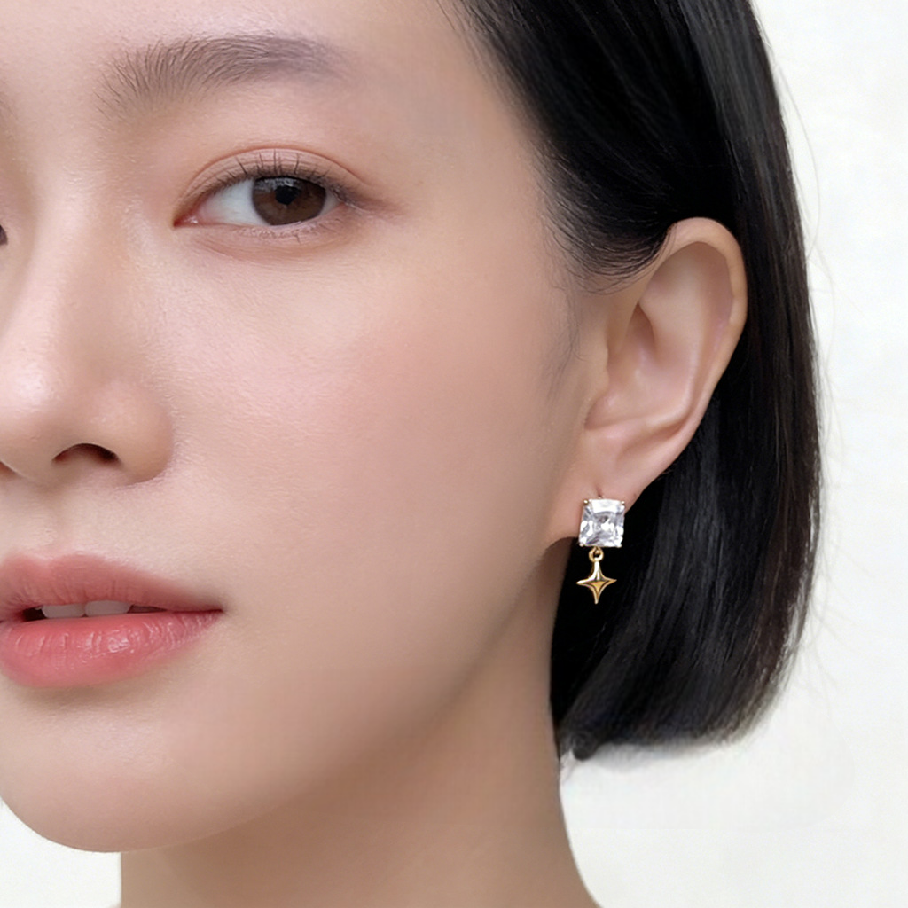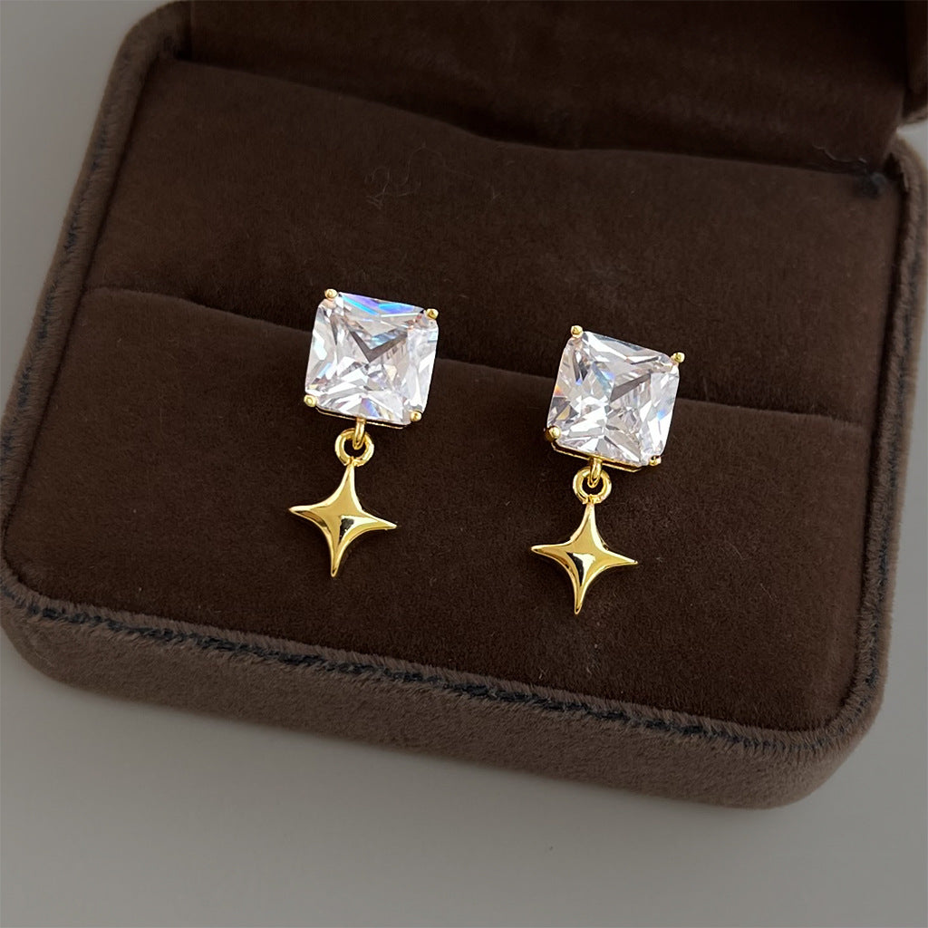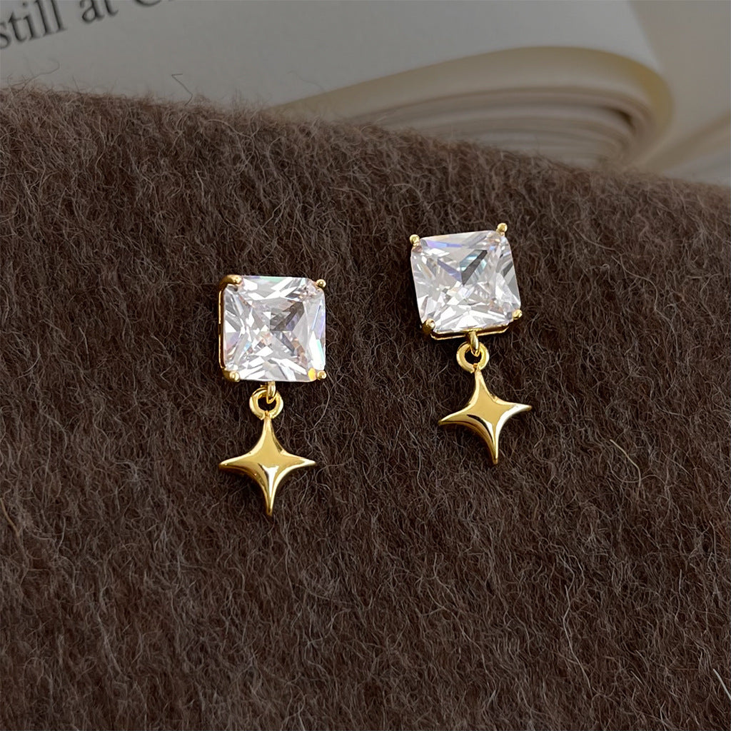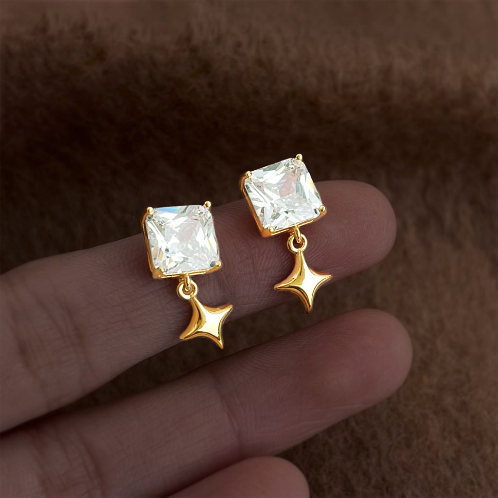 A廠 【5040】時尚高級感個性芒星幾何方形鋯石新款耳環耳環飾品供應鏈 26.03-3