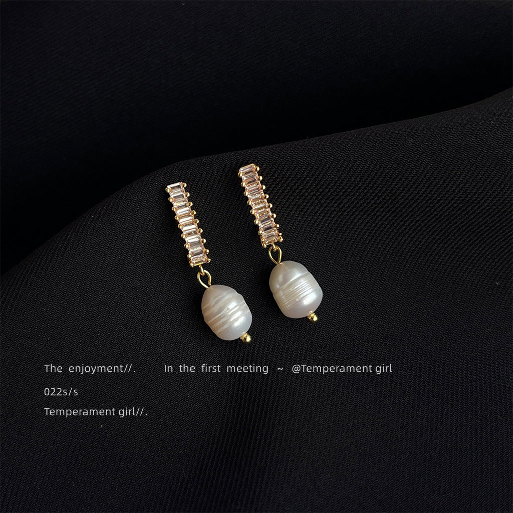 C廠【5043】淡水珍珠微鑲鋯石925銀針鍍14K時尚通勤高級感百搭新款耳環女耳環 24.10-4