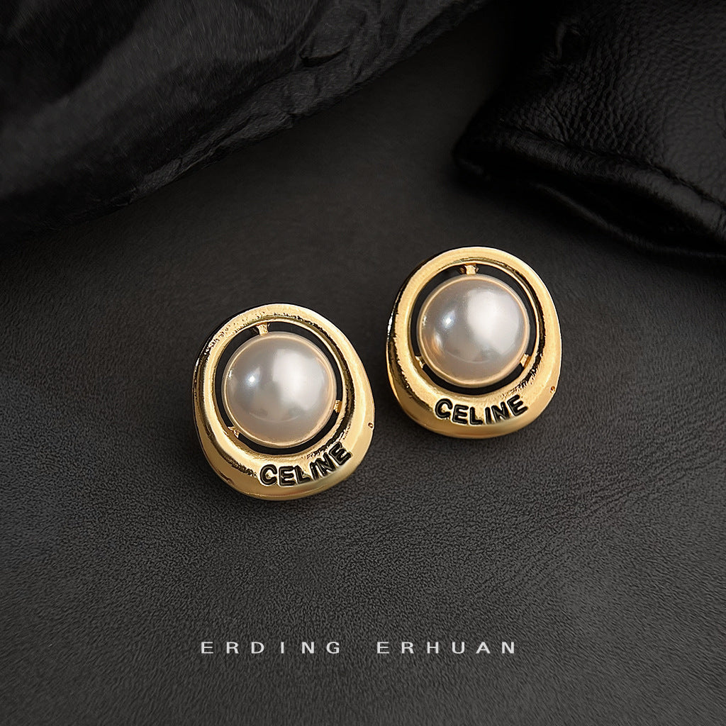 C廠【5146】時尚通勤鍍14K金屬高級感簡約百搭字母橢圓幾何耳環耳環 飾品 25.08-1
