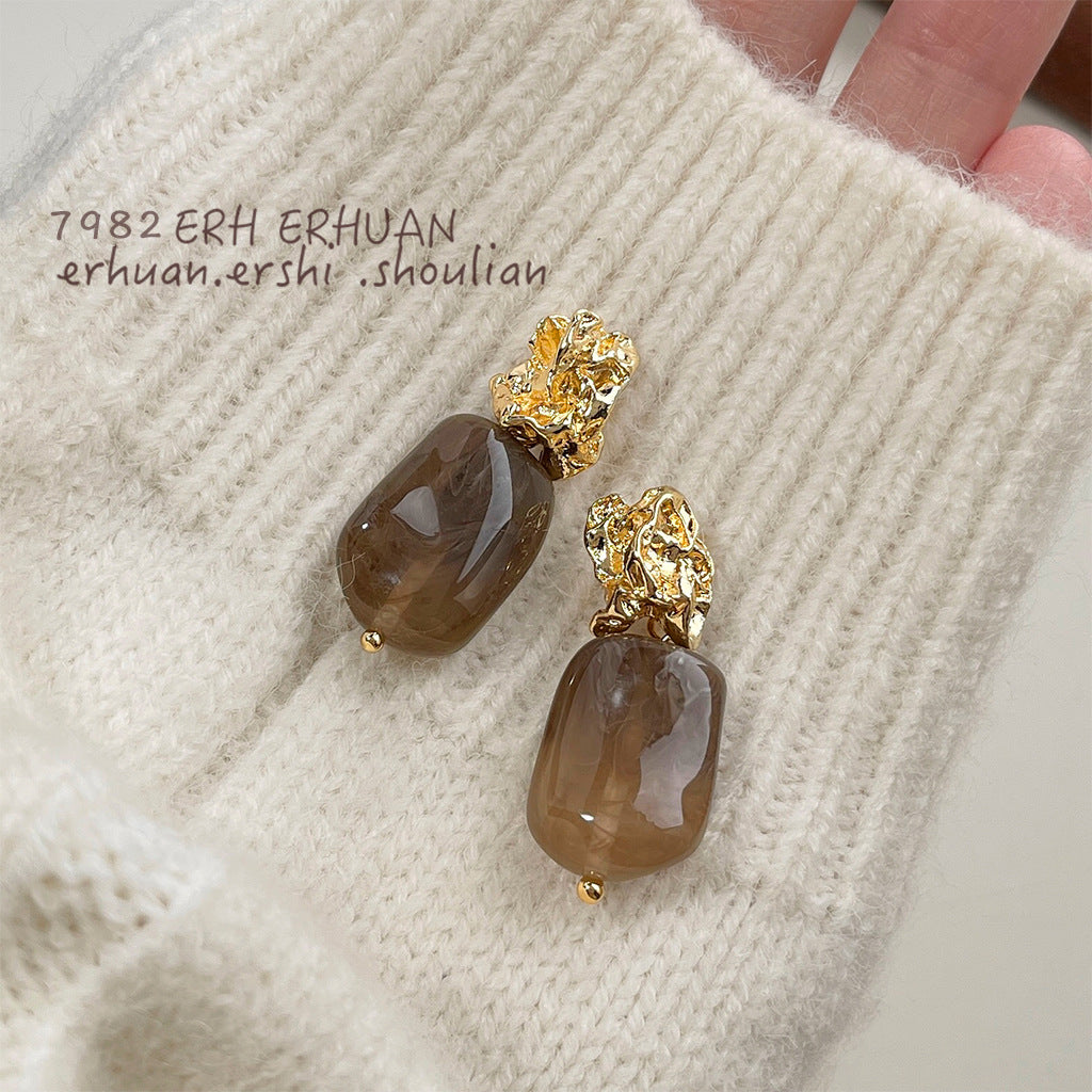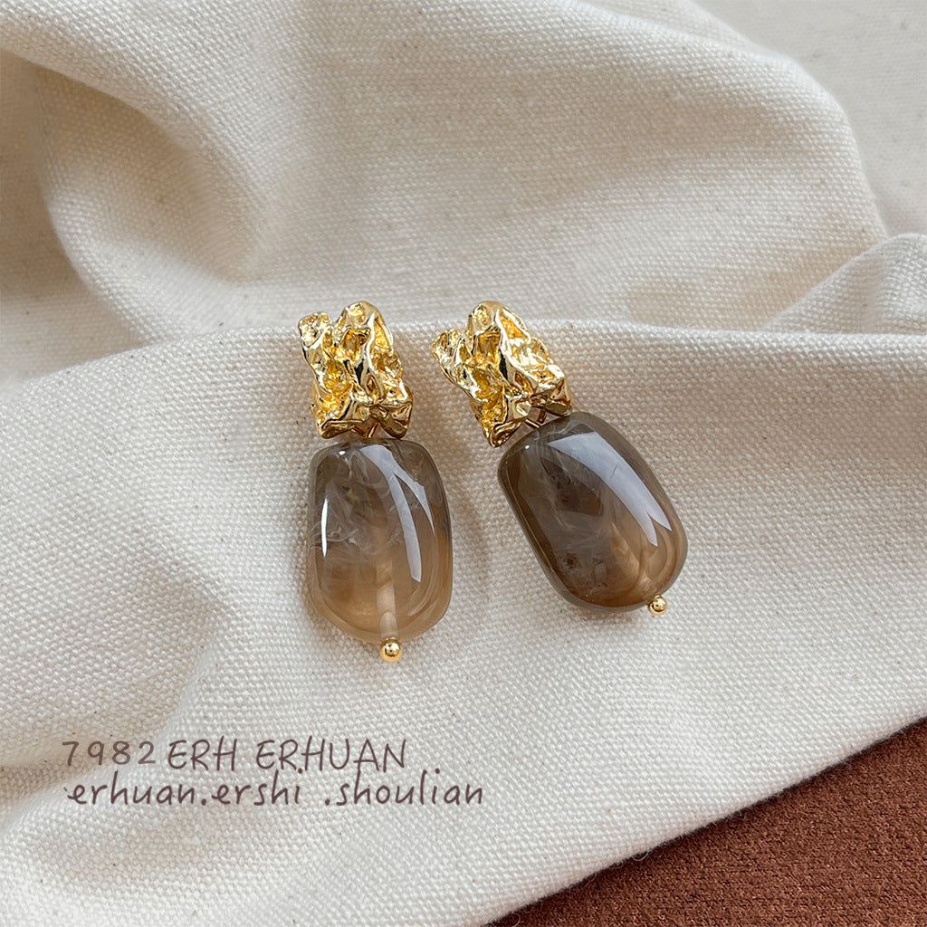 C廠【5151】美拉德色系文藝復古暈染咖色不規則設計師款耳環飾品 24.11-3