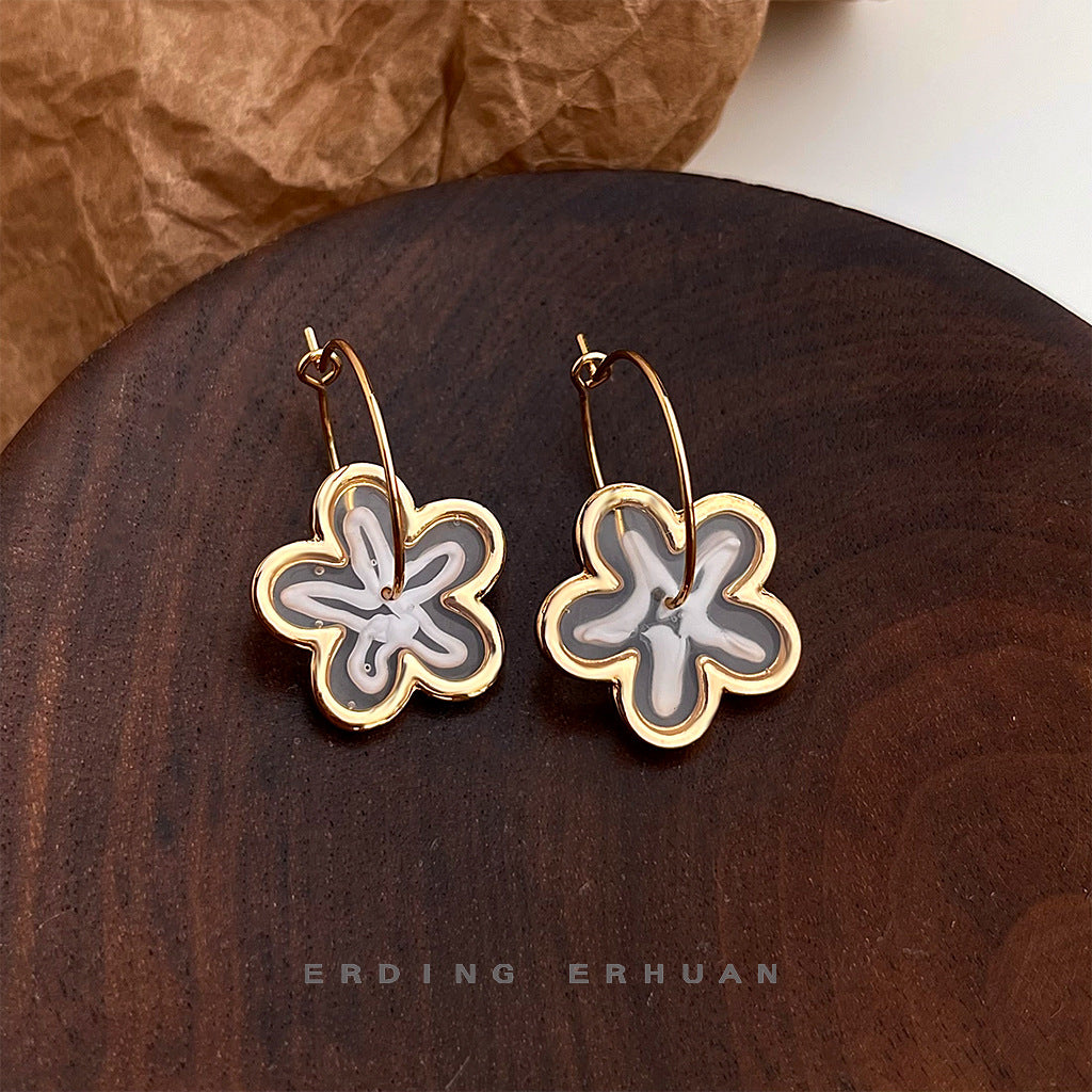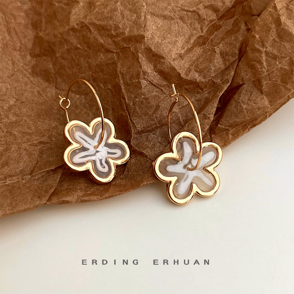 C廠【5172】清新甜美簡約百搭花朵耳環女氣質優雅圓形幾何大耳圈新款耳環 25.02-3