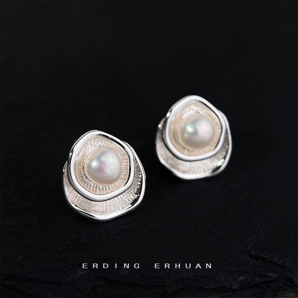C廠【5226】淡水珍珠925銀針鍍14K藝術氣息個性小眾設計師國潮耳環耳飾 25.02-3